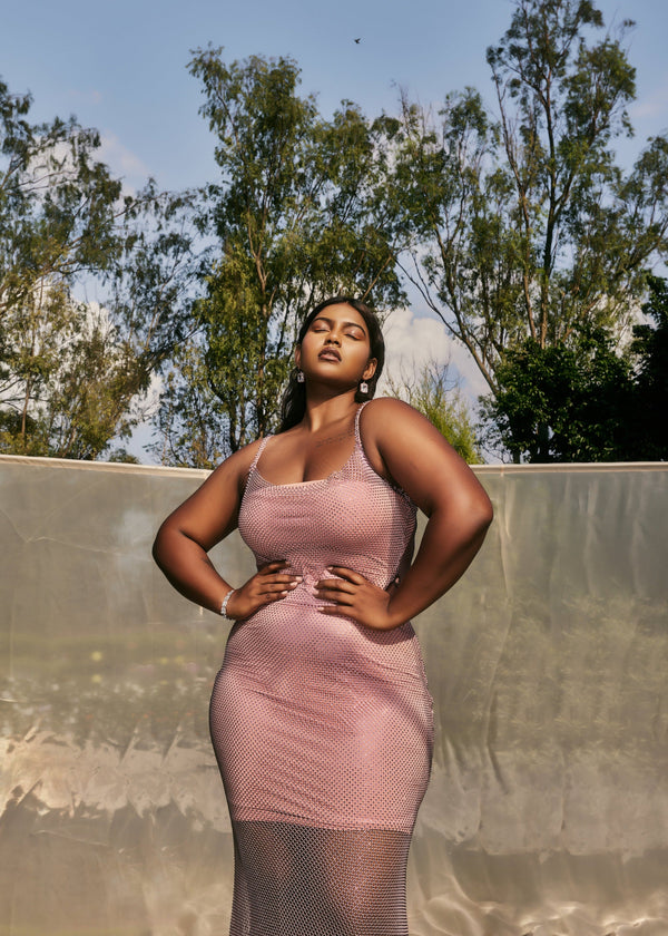 Liza Pink Crystal Mesh Maxi Dress