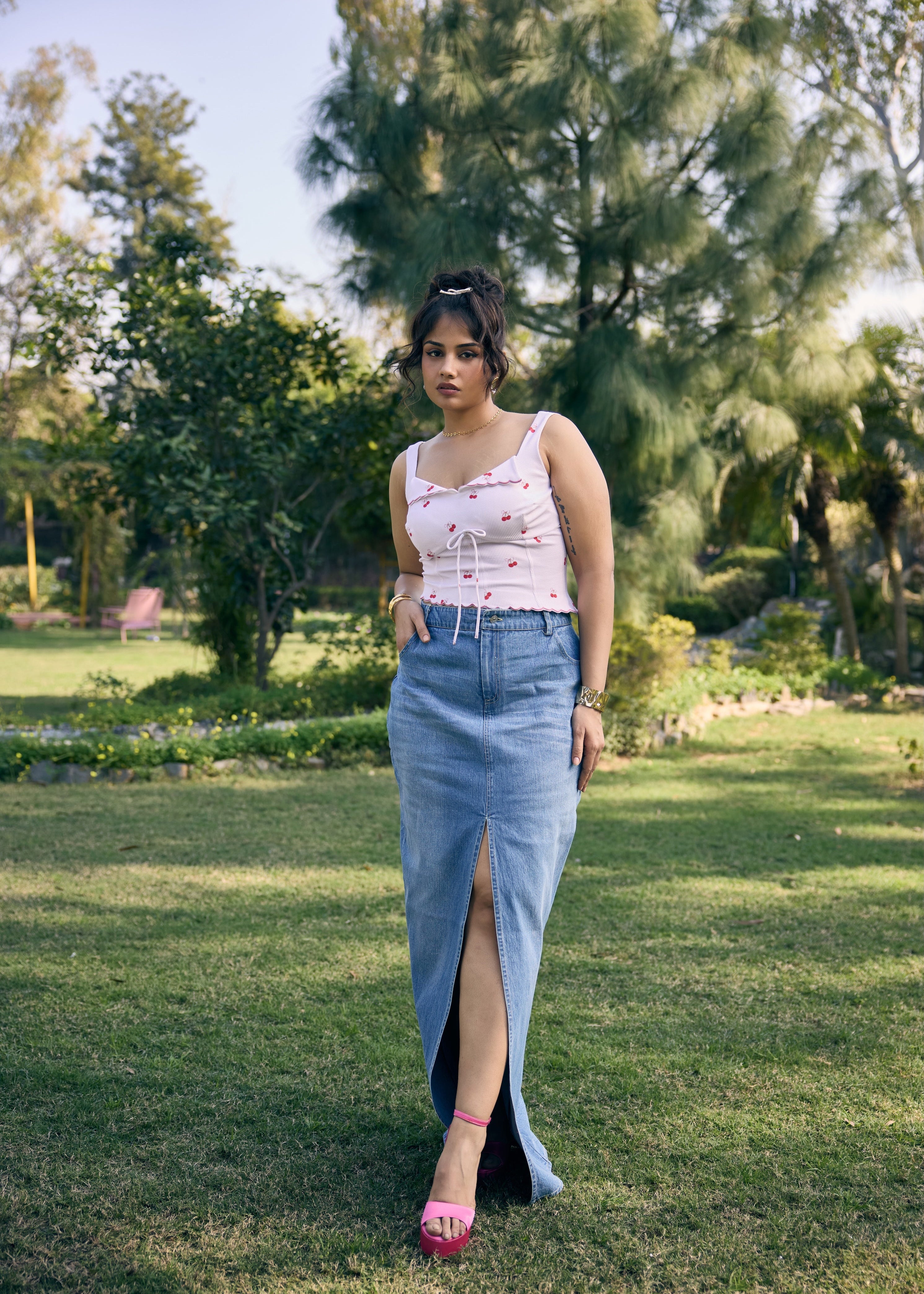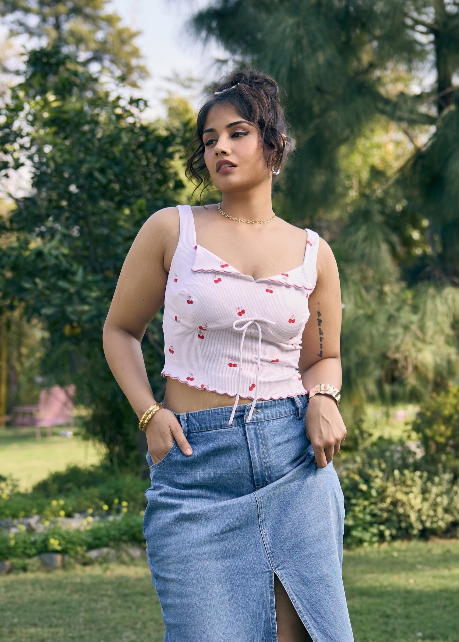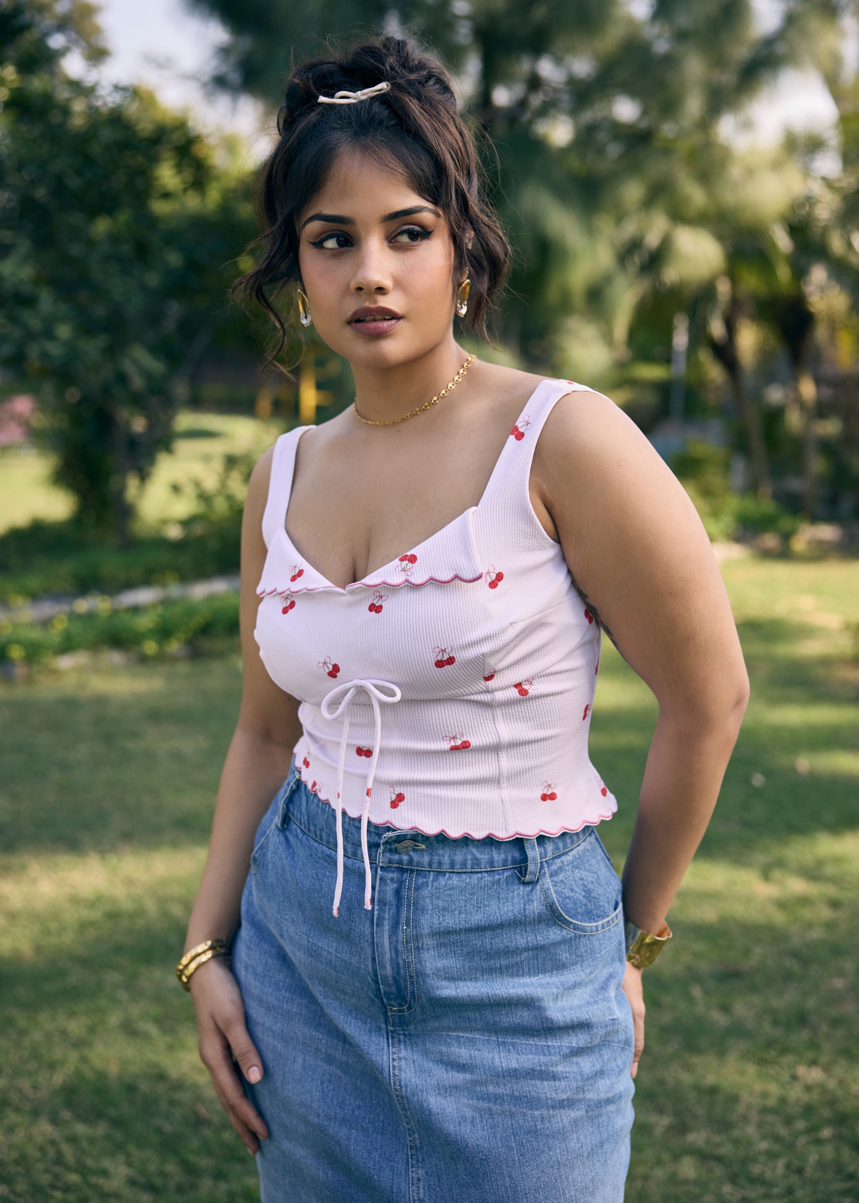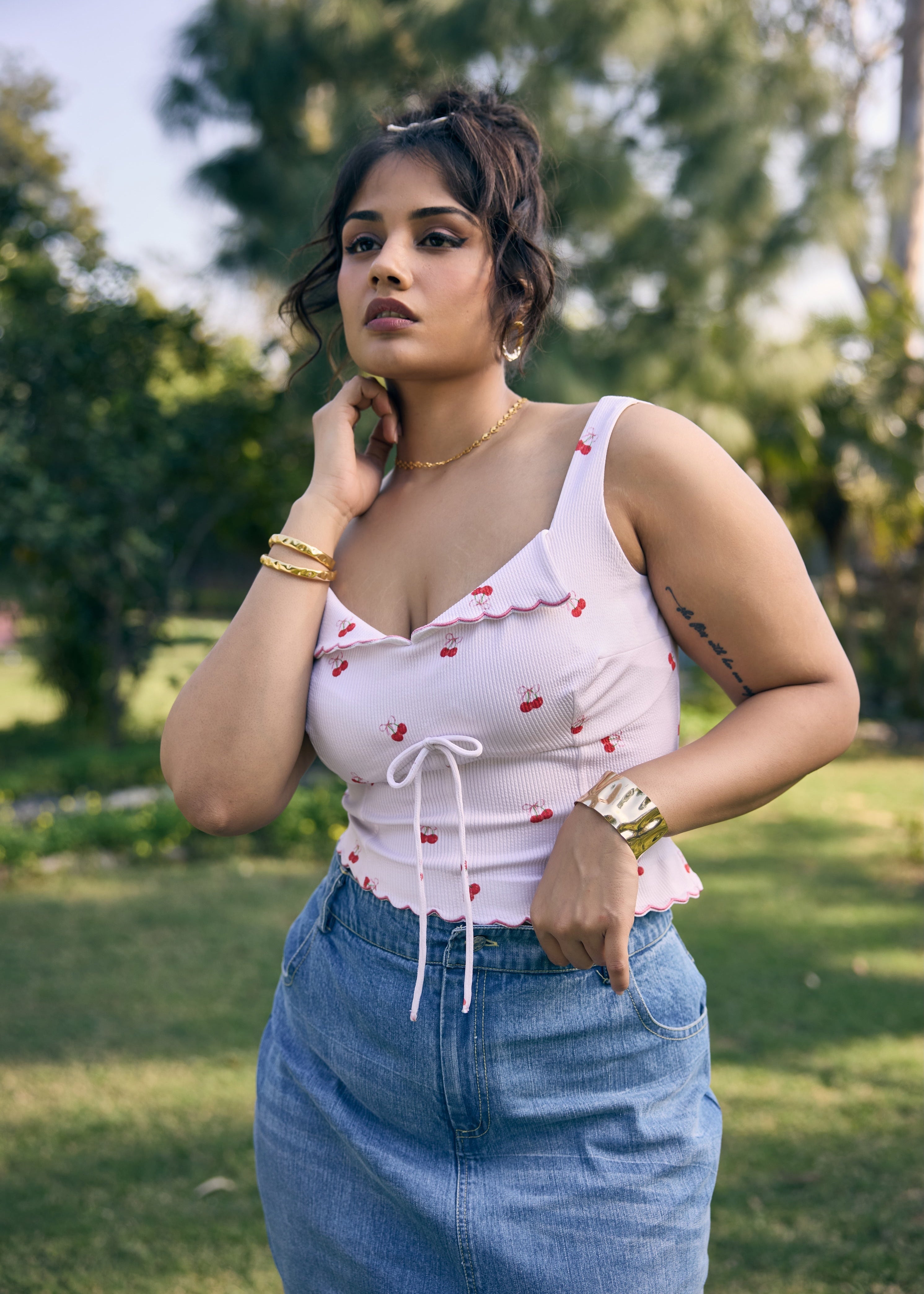 Ketlin Ruched Crop Top with Bow Detailing