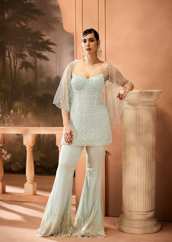 Ryka Sage Green Mirror Embroidered Kurta Set