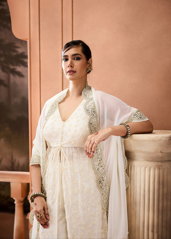 Devashri Beige Pearl Embroidered Kurta Set