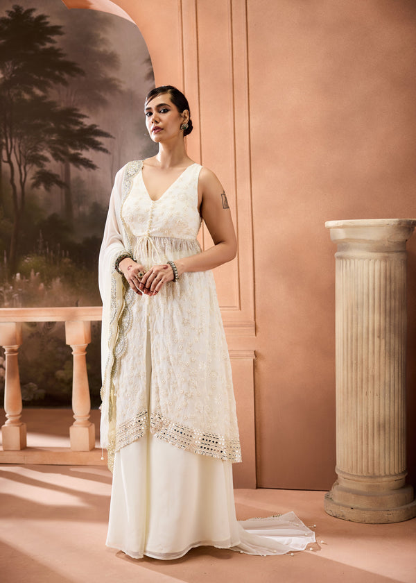 Namya Buff Orange Embroidered Sharara Set