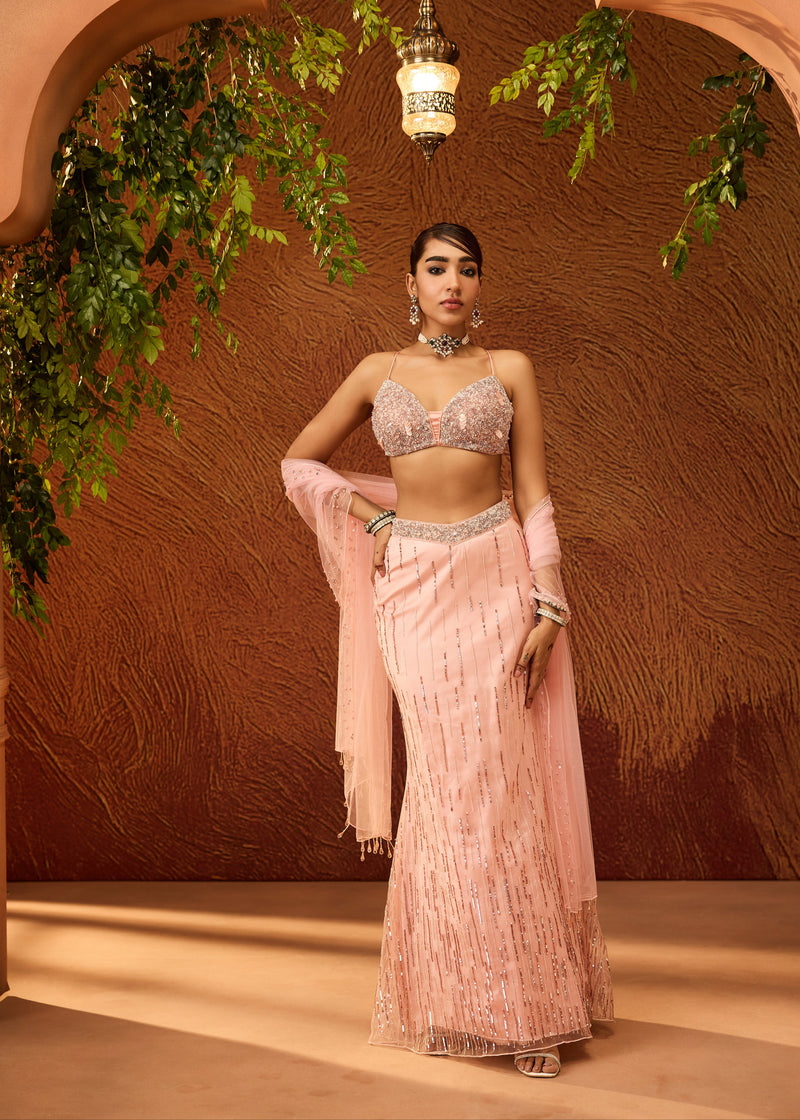 Pankhuri Baby Pink Embellished Mermaid Lehenga Set