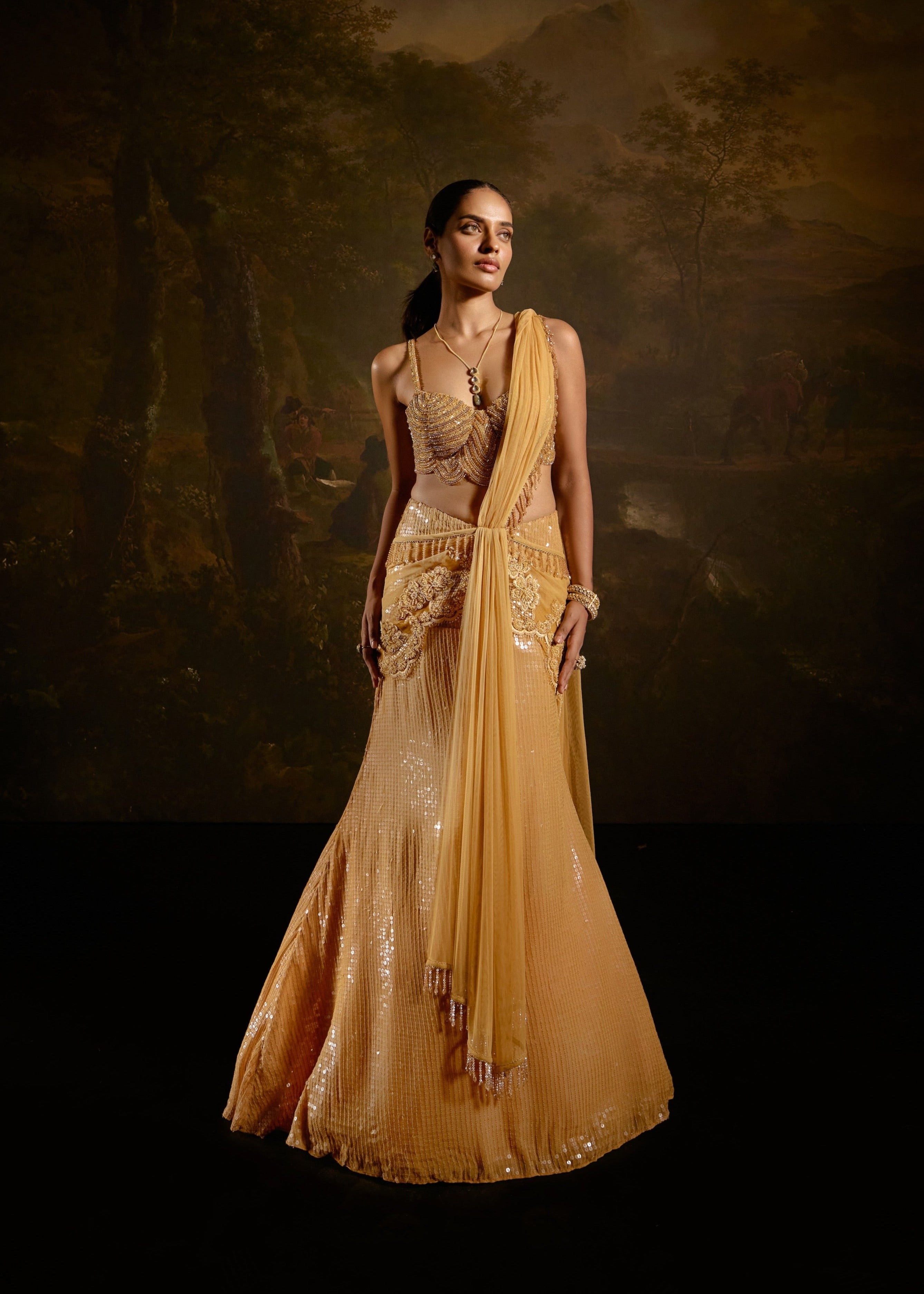 Suhaila Gold Tissue Pre-Draped Saree Set