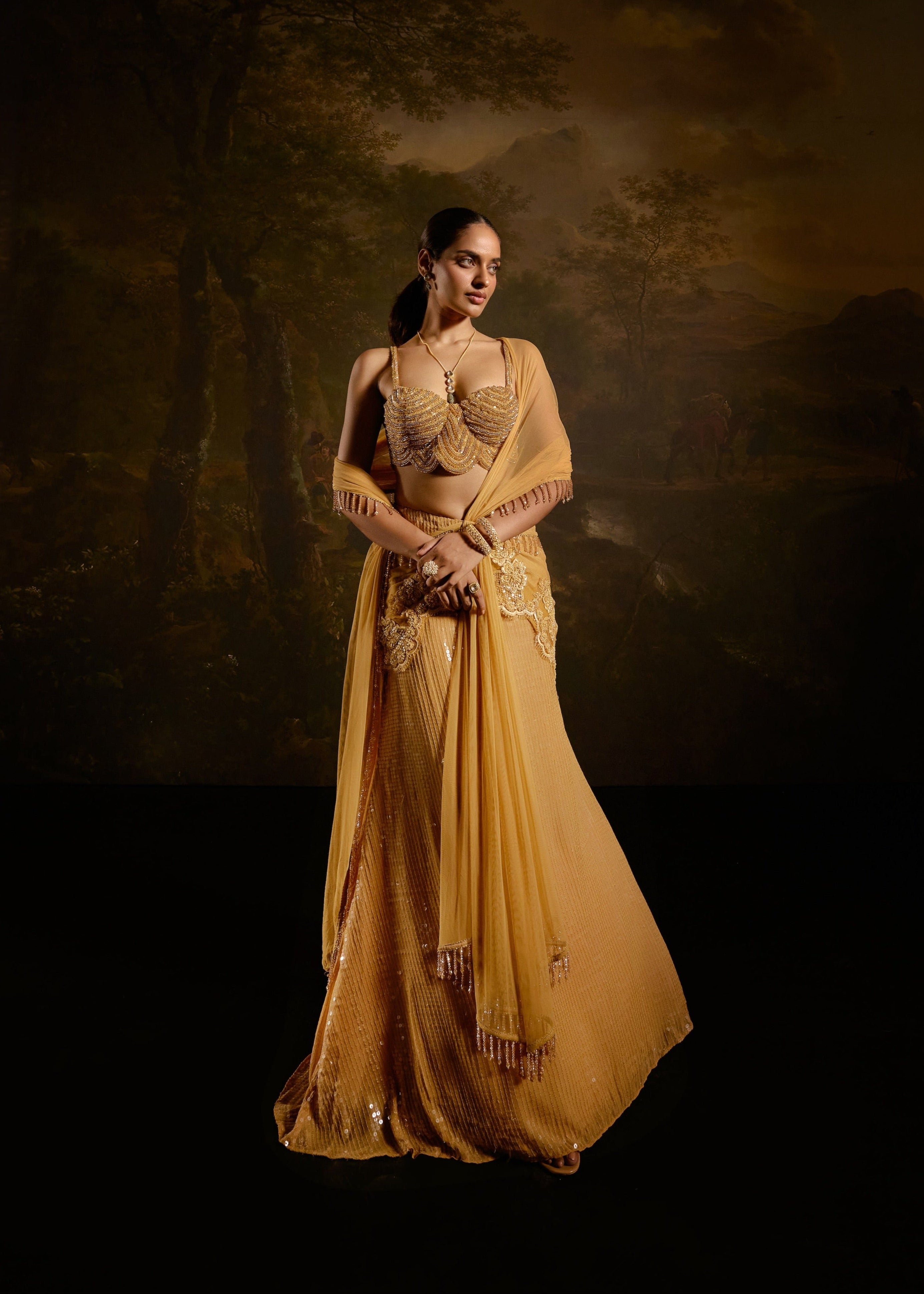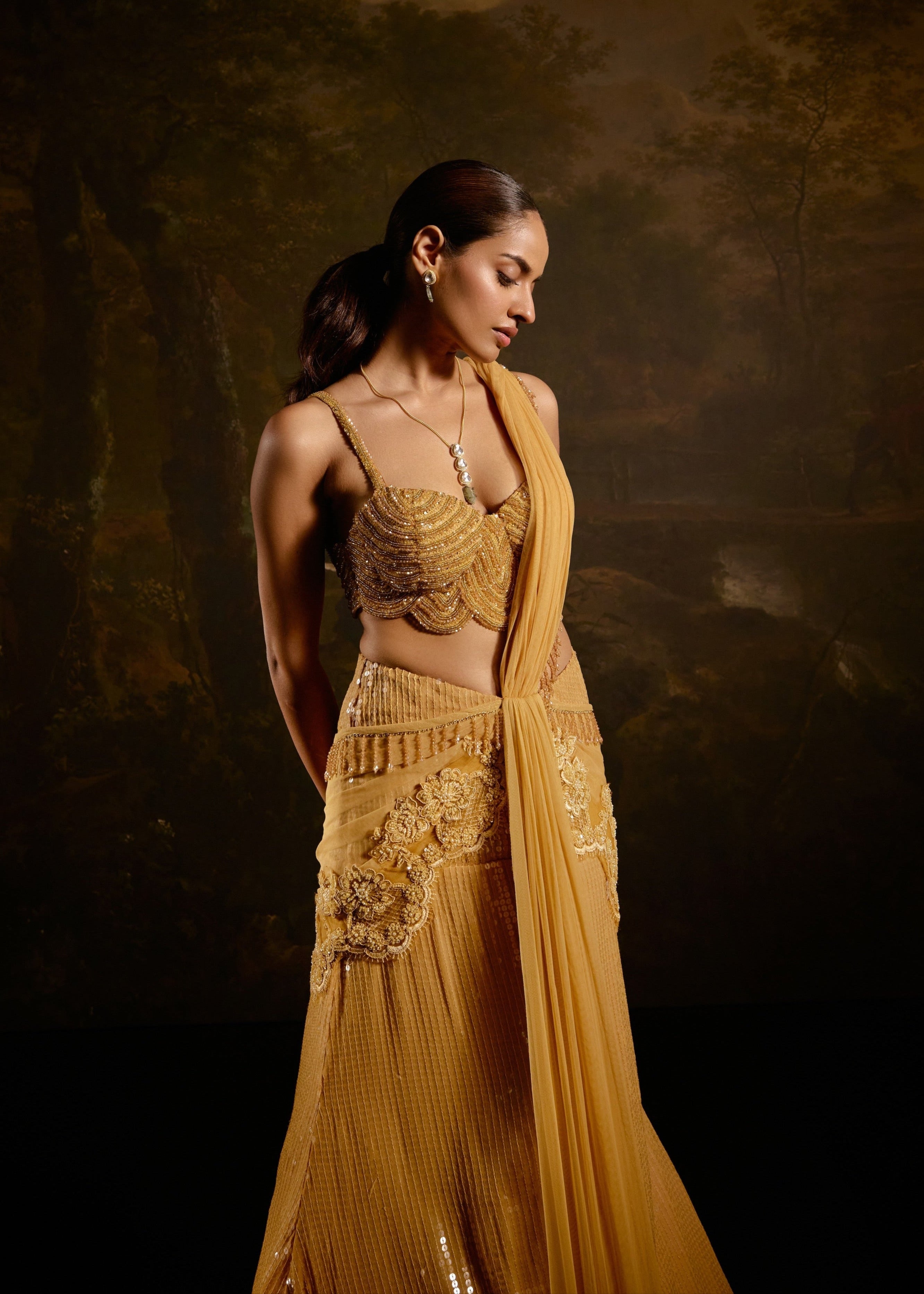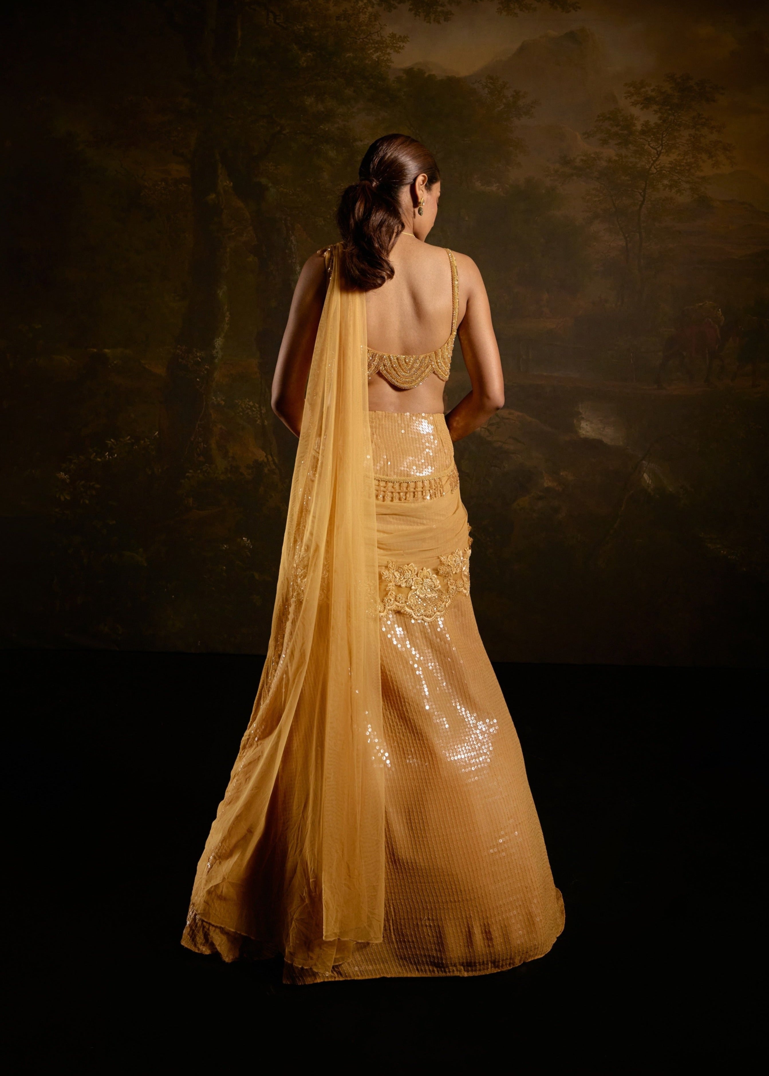 Dyuti Gold Shimmer Pre-Draped Saree Gown