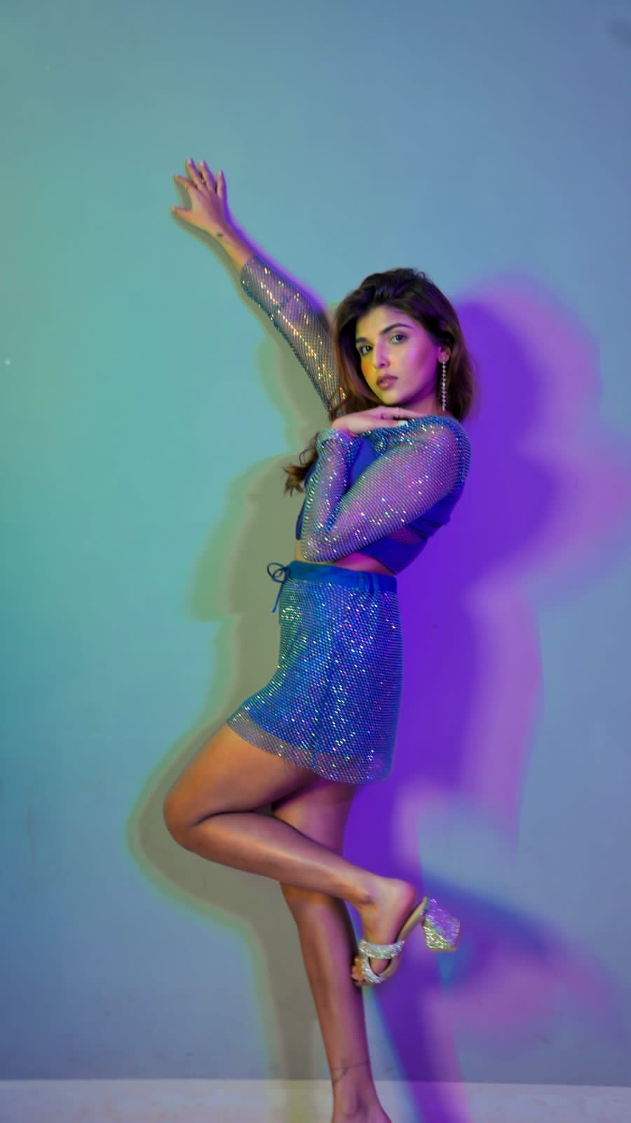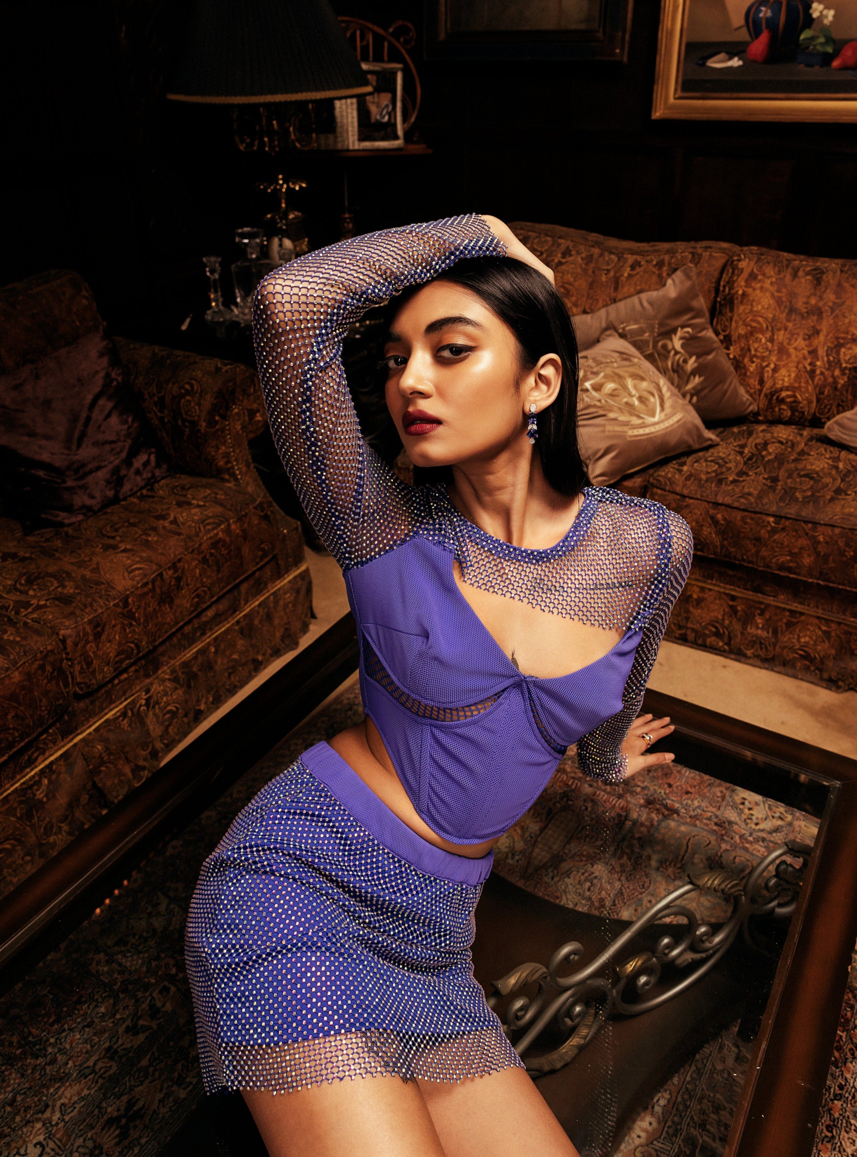 Jordyn Blue Crystal Mesh Mini Skirt CL