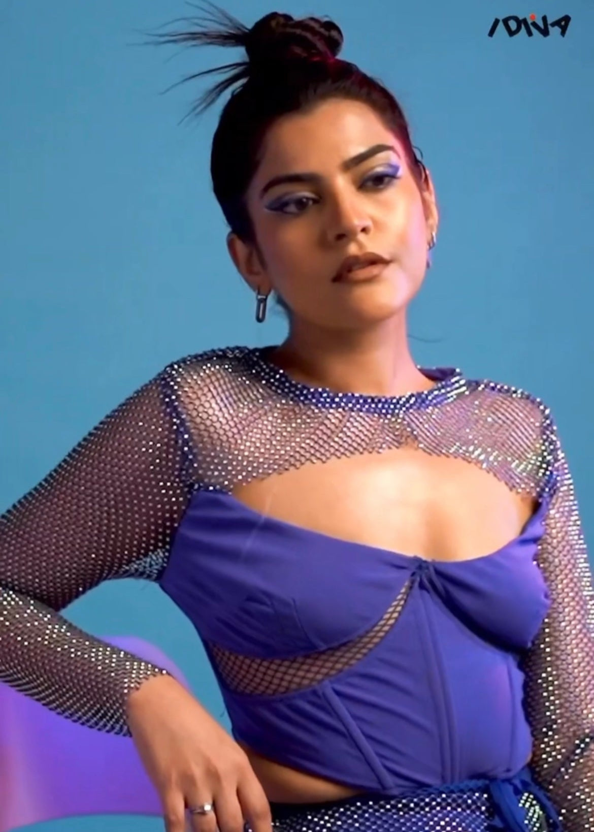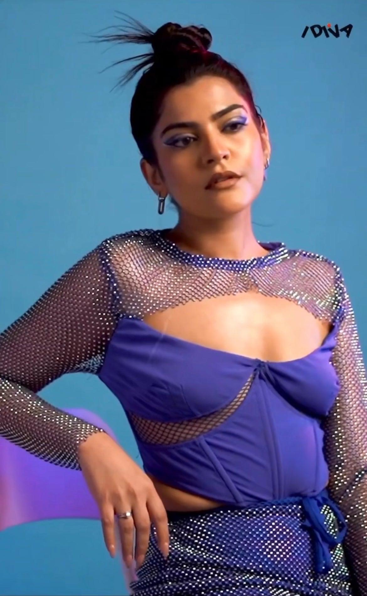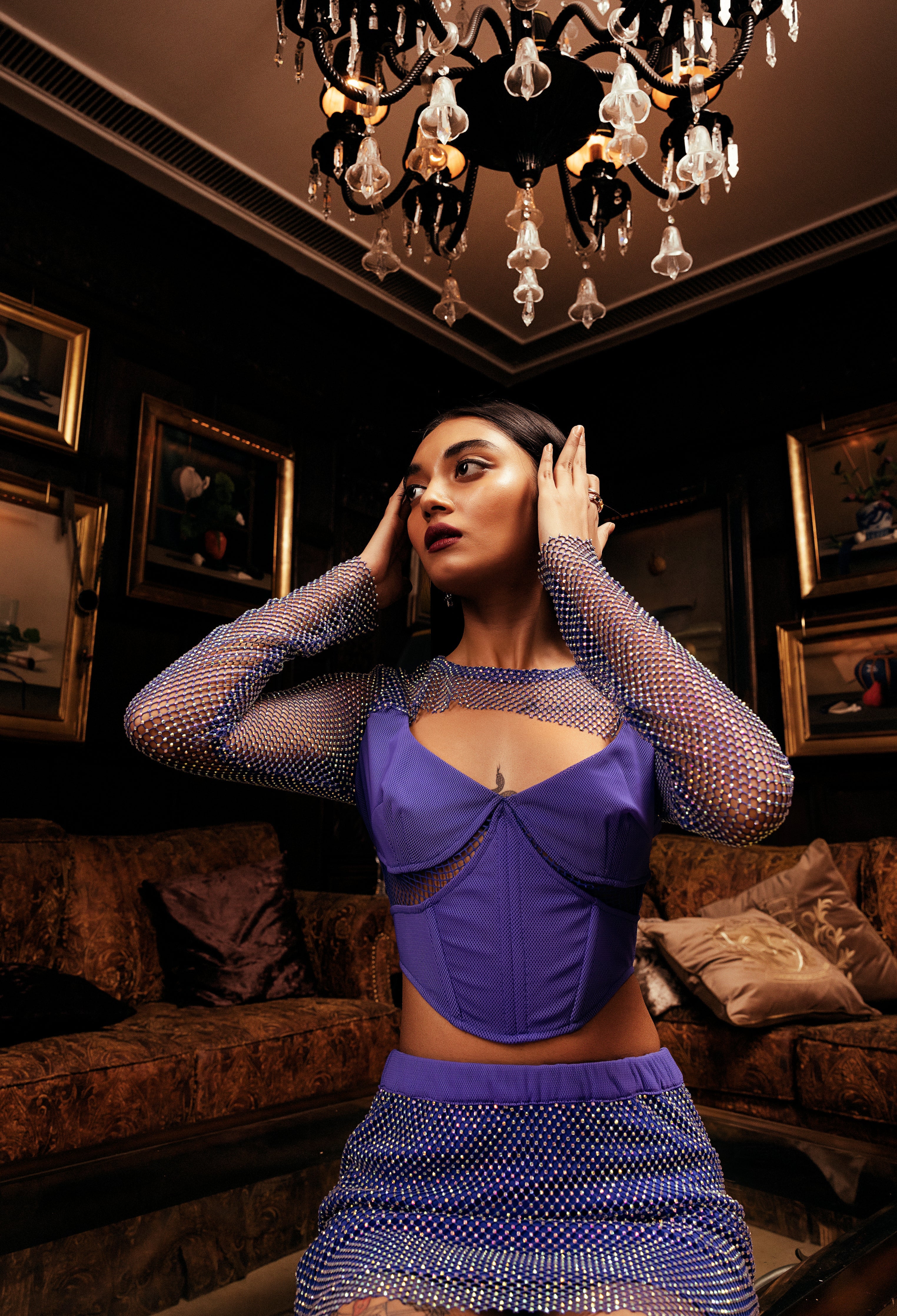 Jade Blue Crystal Mesh Corset Top CL