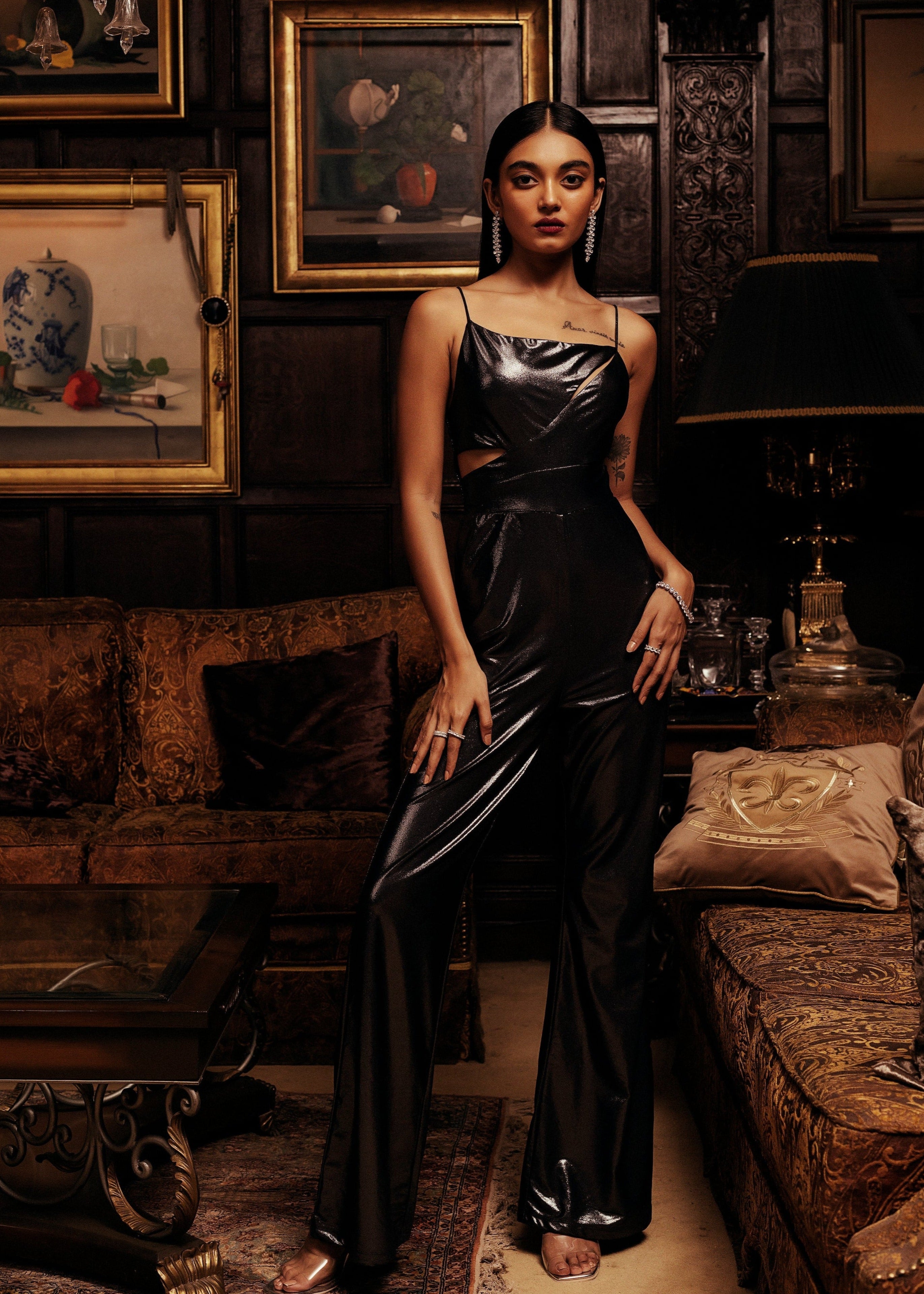 Roxanne Black Lurex Cutout Jumpsuit