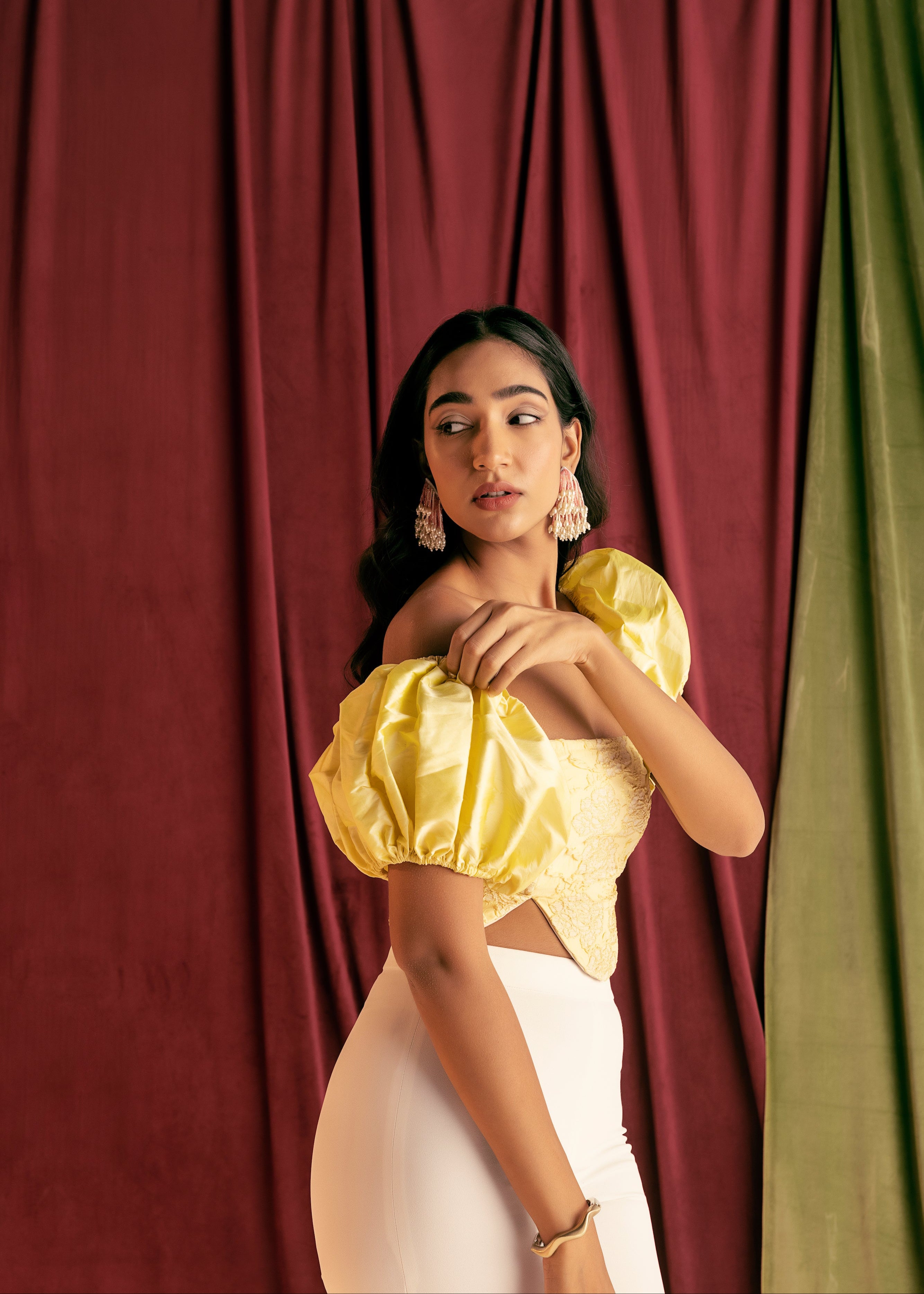 Esther Yellow Embroidered Tie Sleeve Corset Top