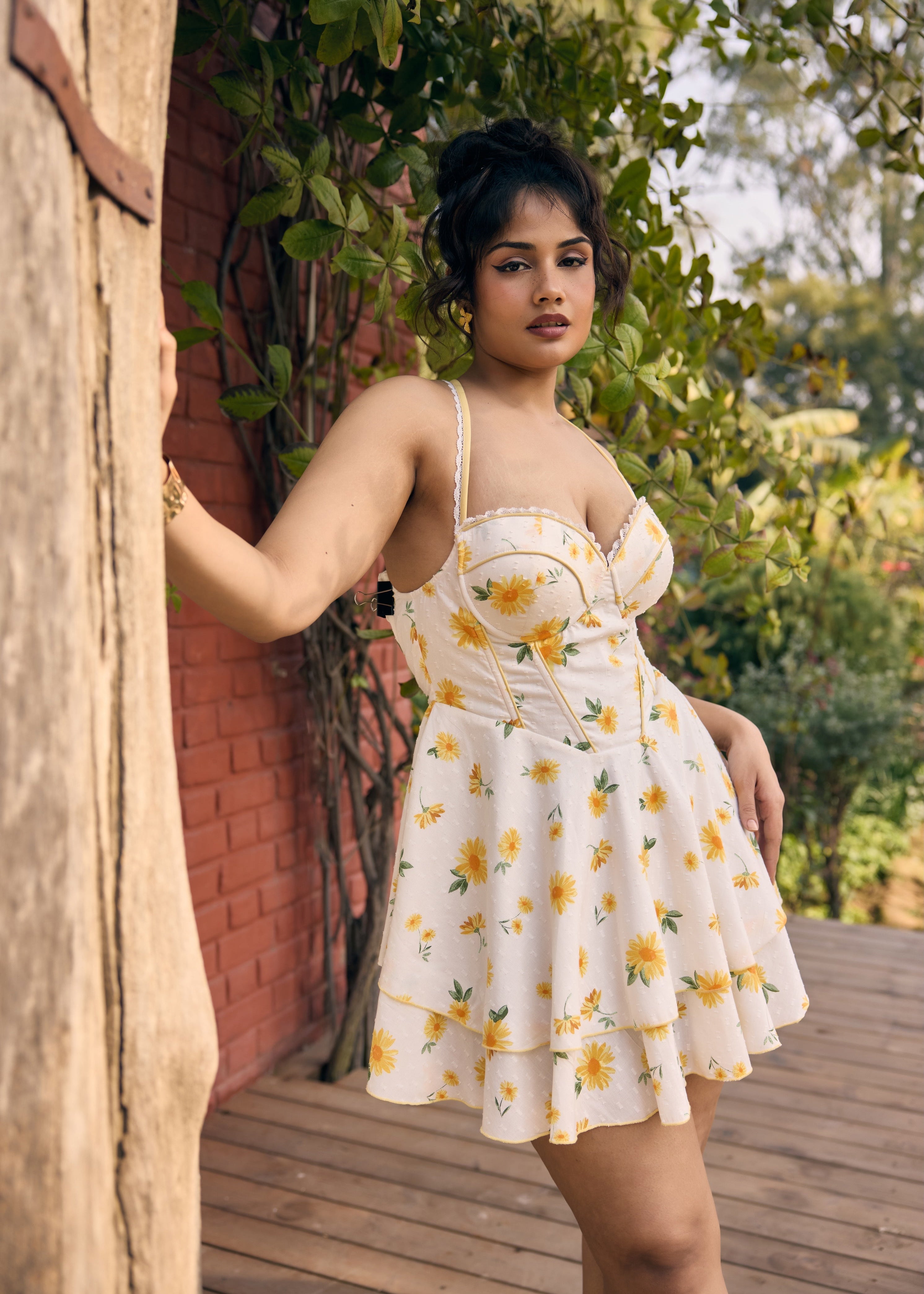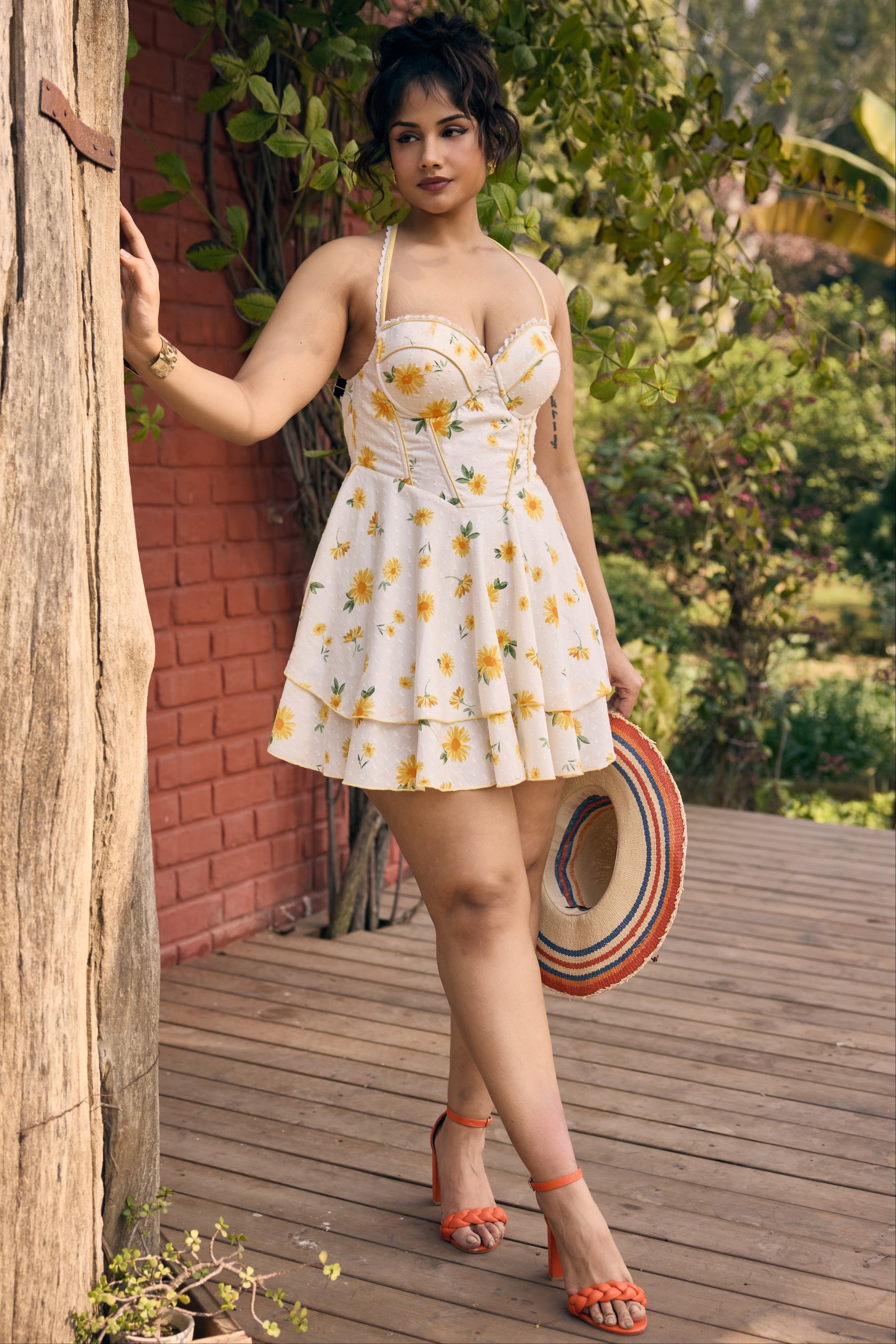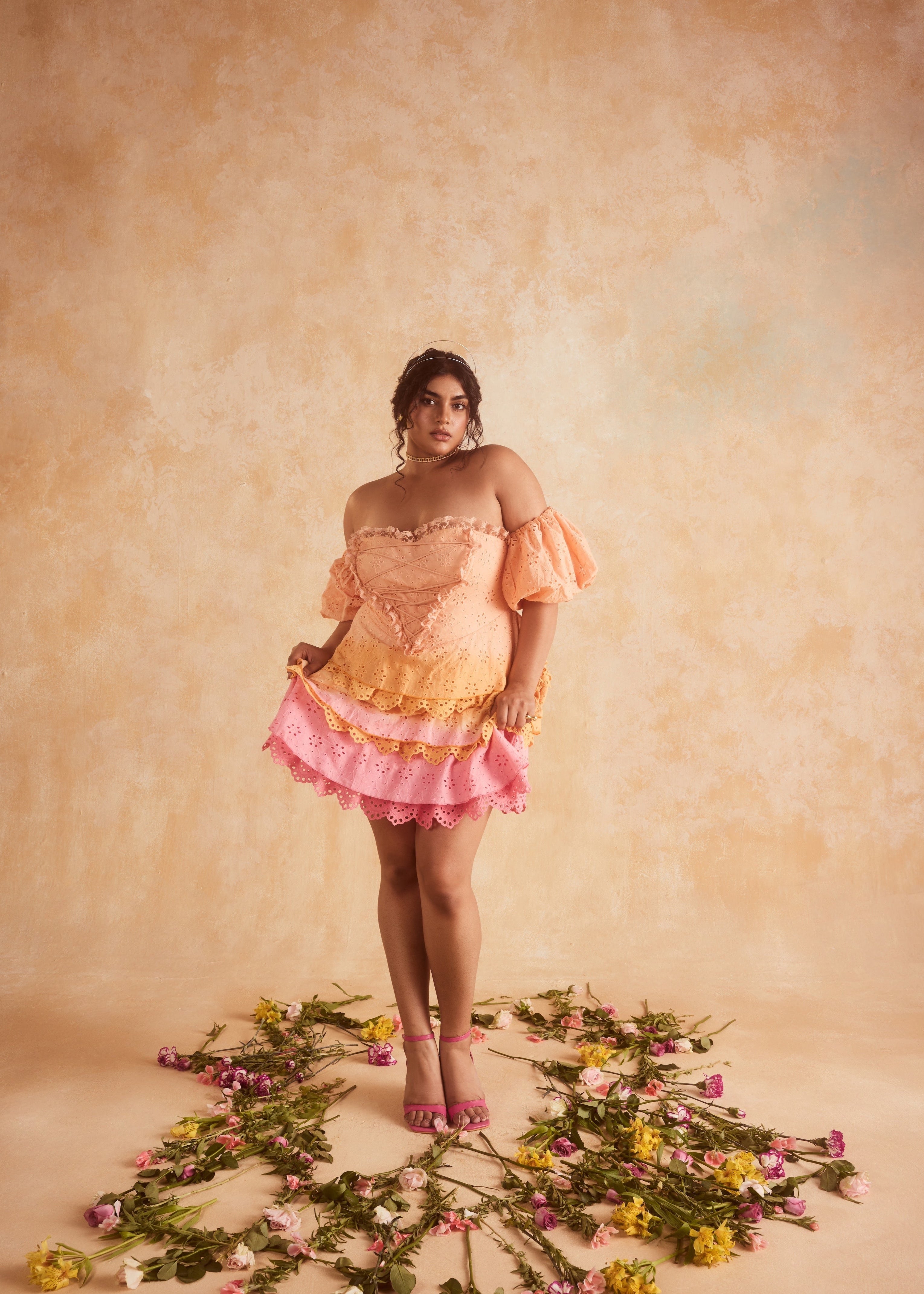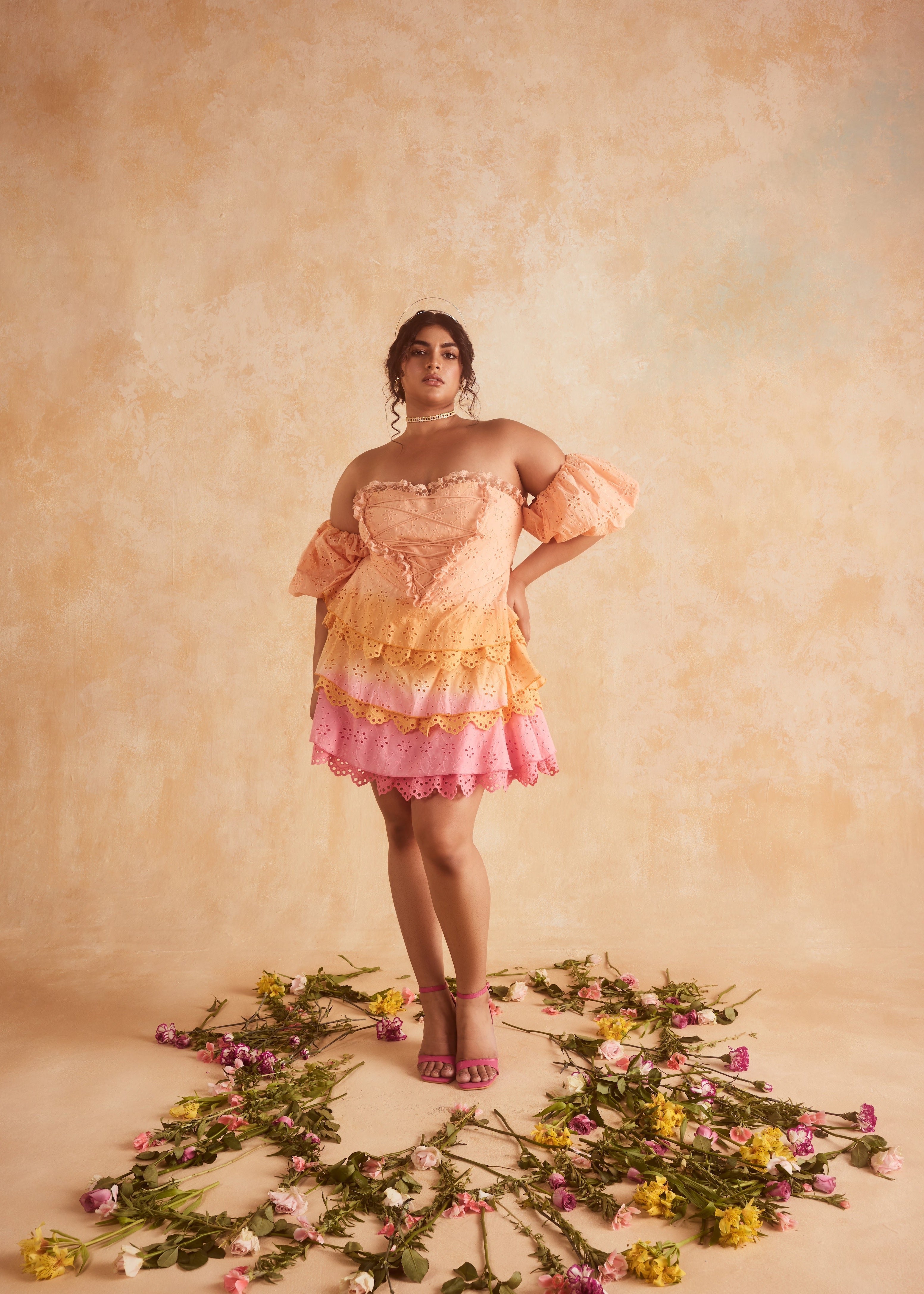 Stevie Sunset Ombre Schiffli Ruffled Corset Mini Dress CL