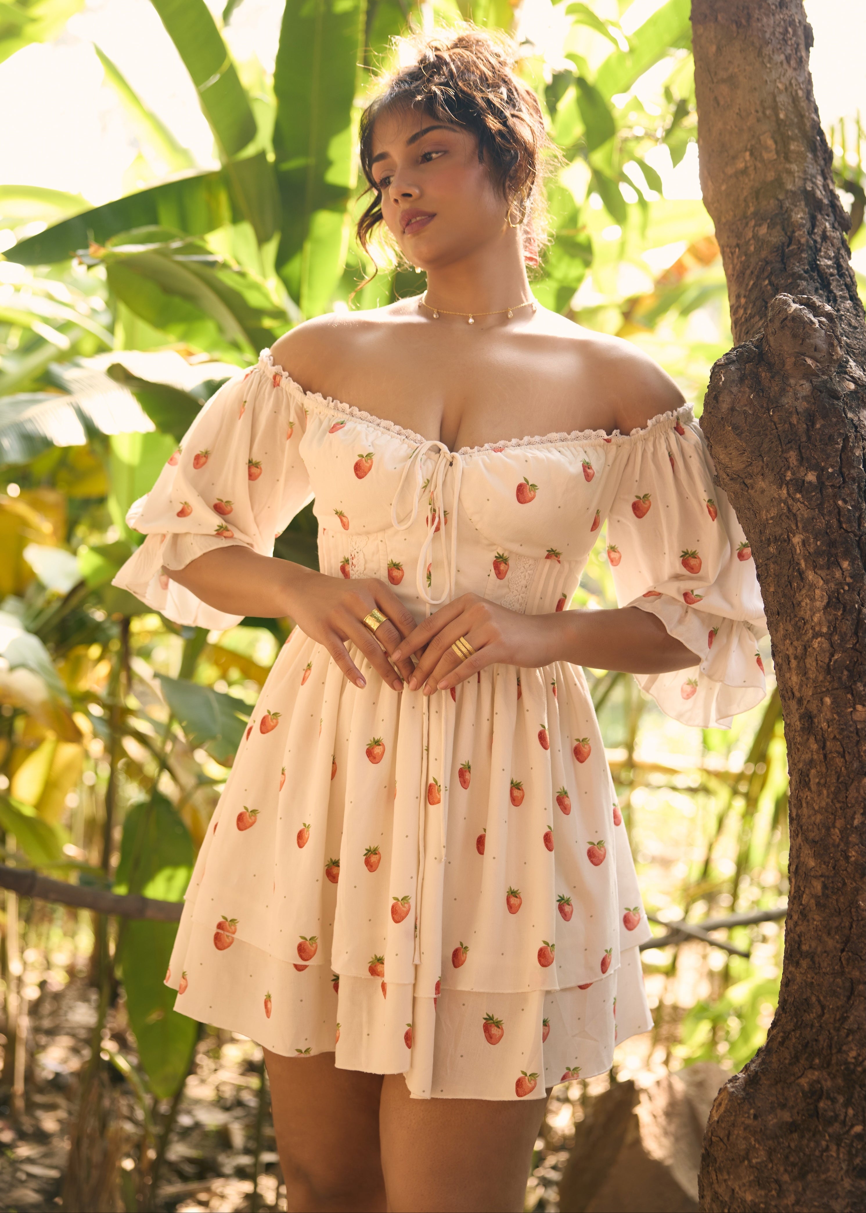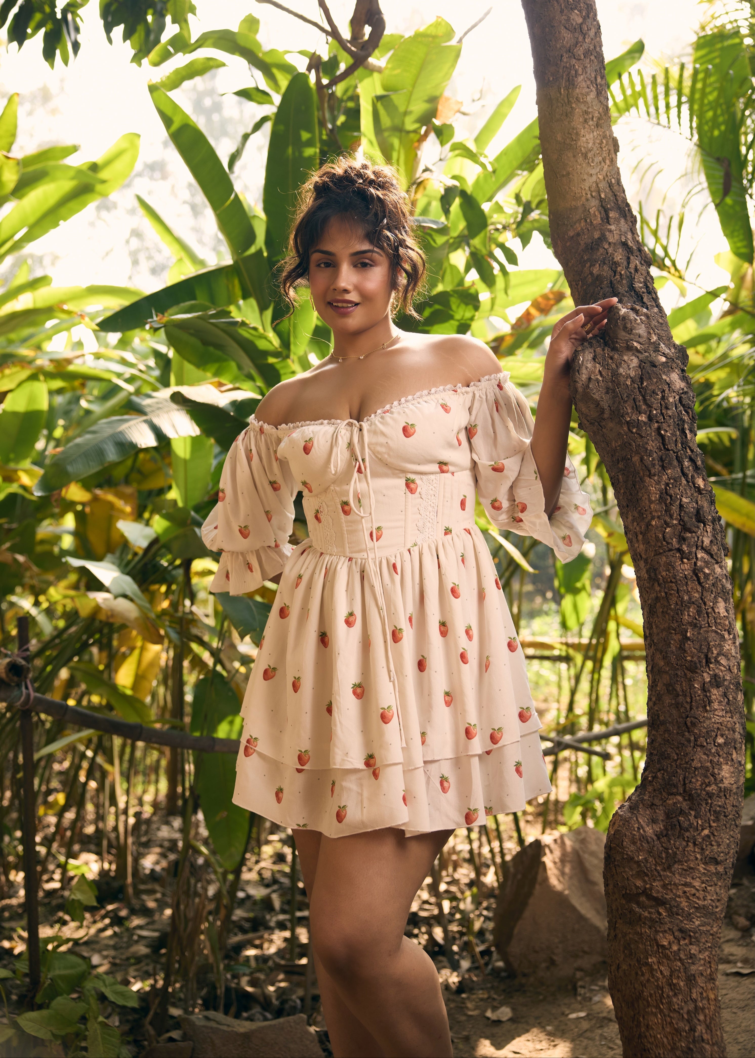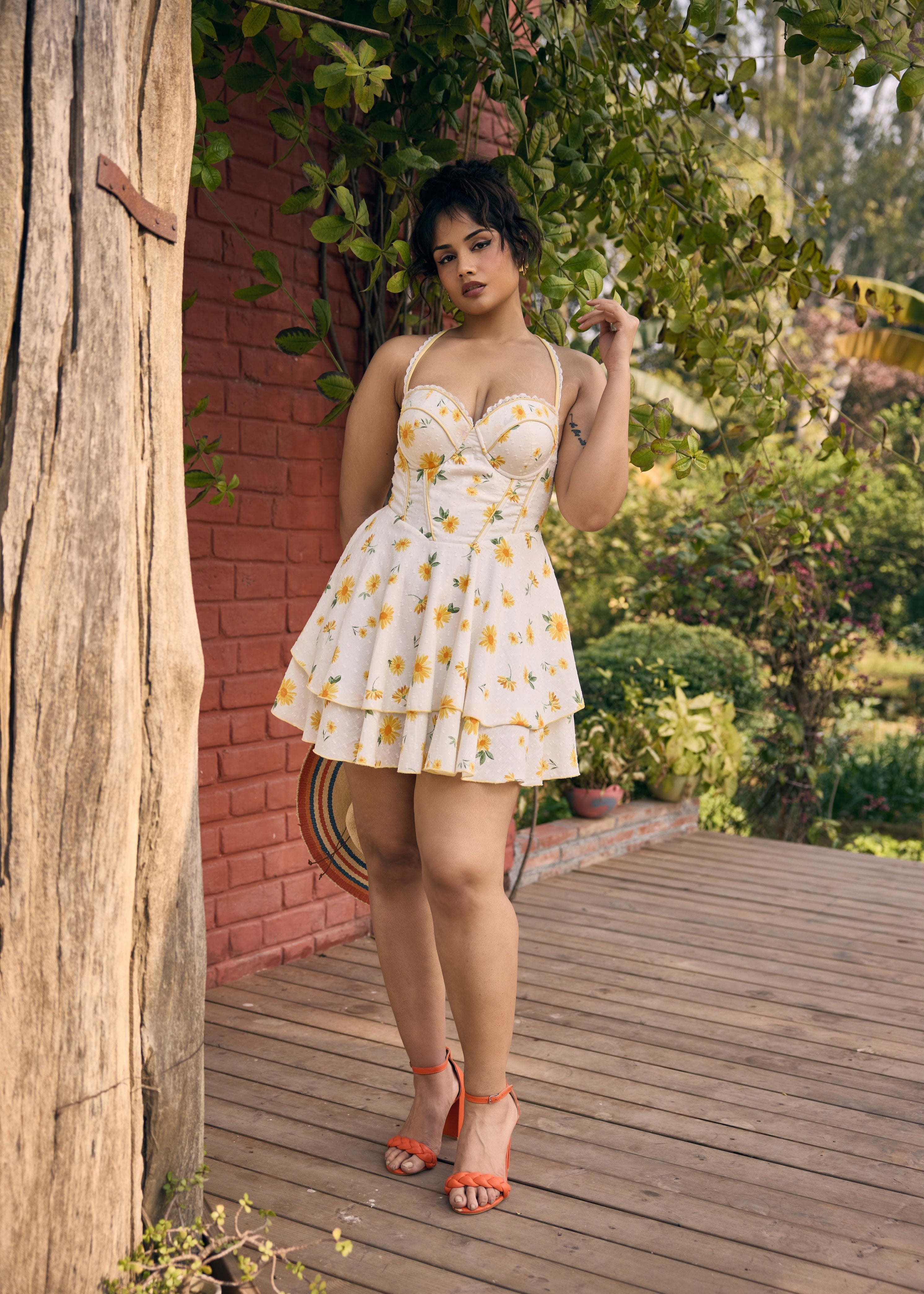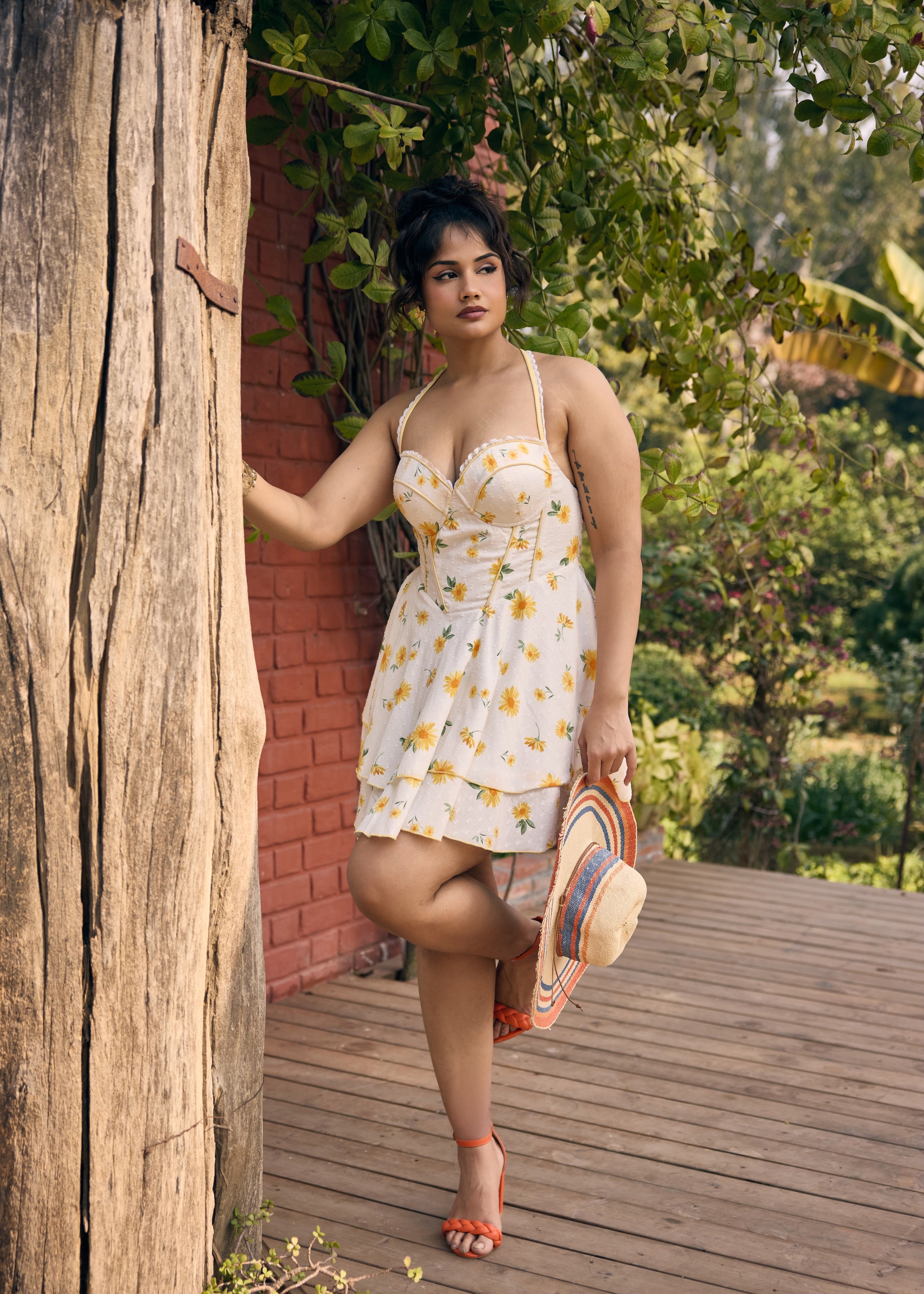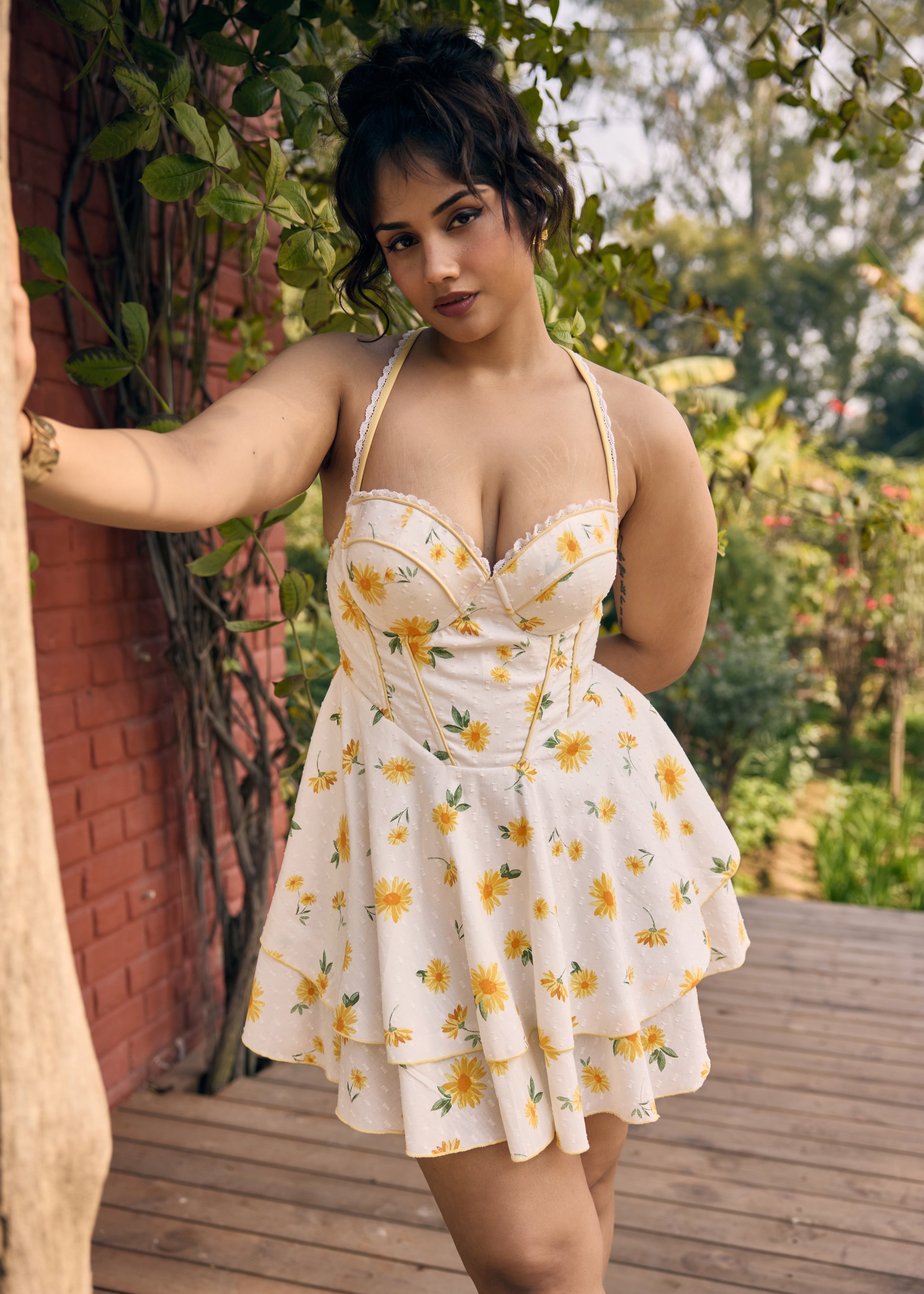 Stevie Sunset Ombre Schiffli Ruffled Corset Mini Dress CL