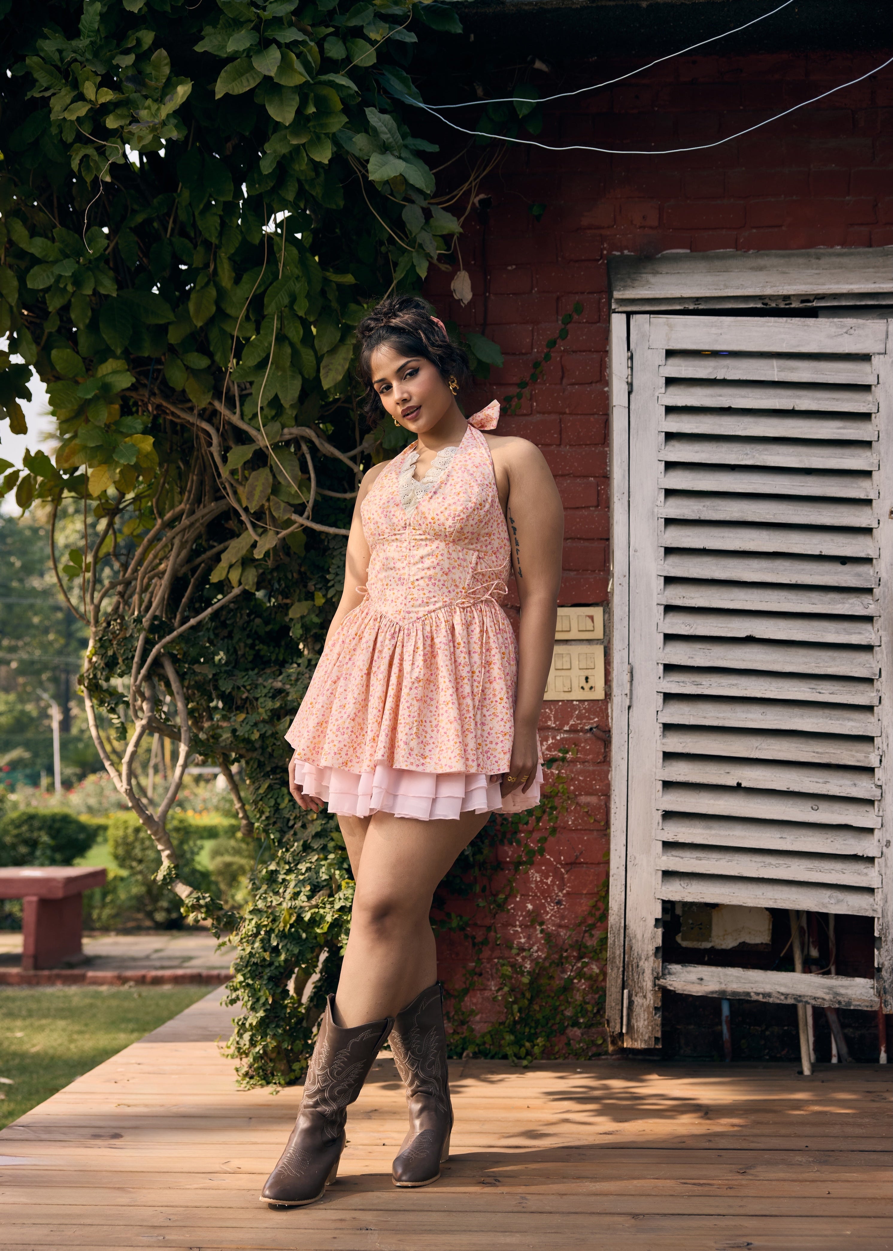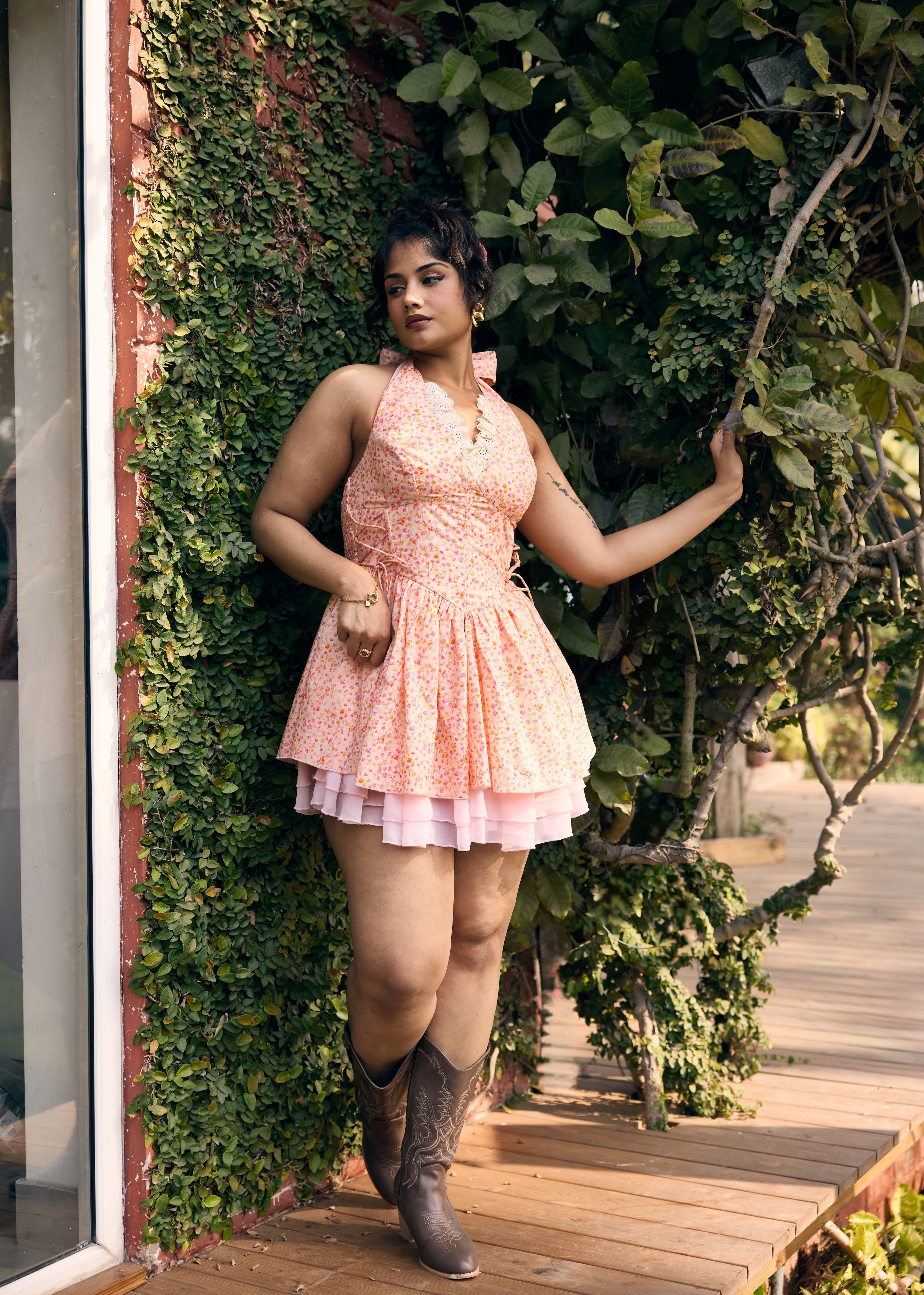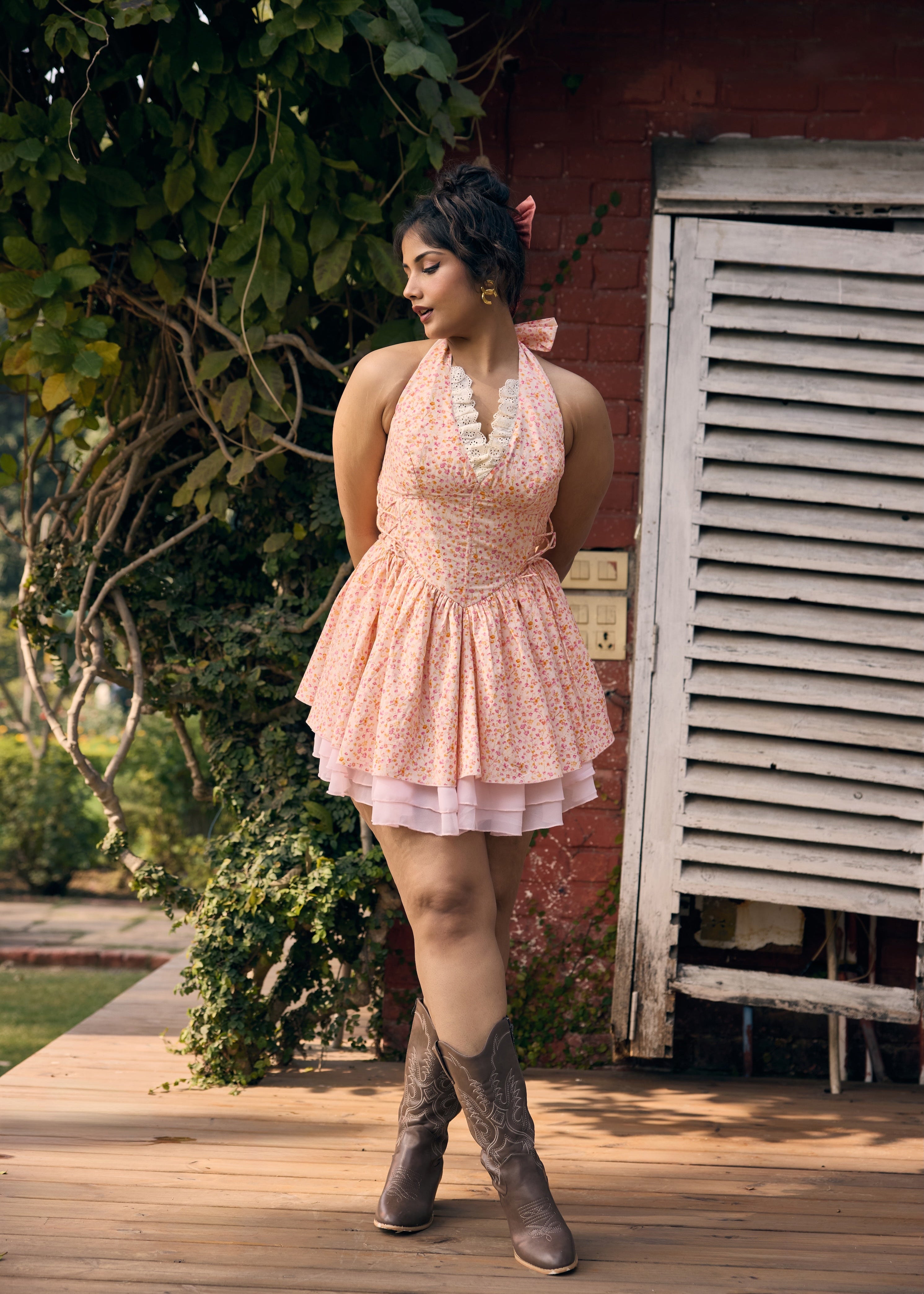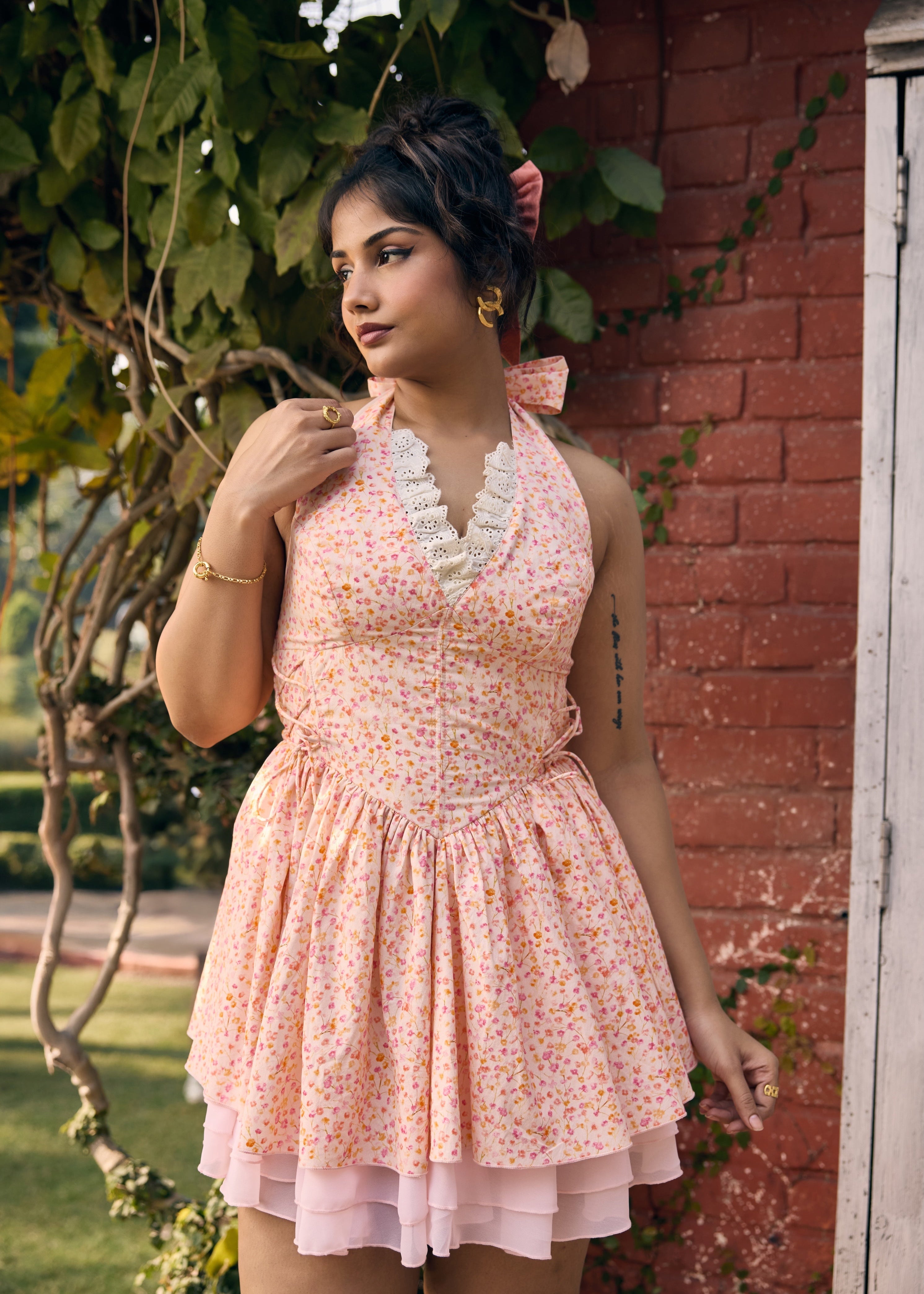 Felicia Baby Pink Corset Puff Mini Dress CL