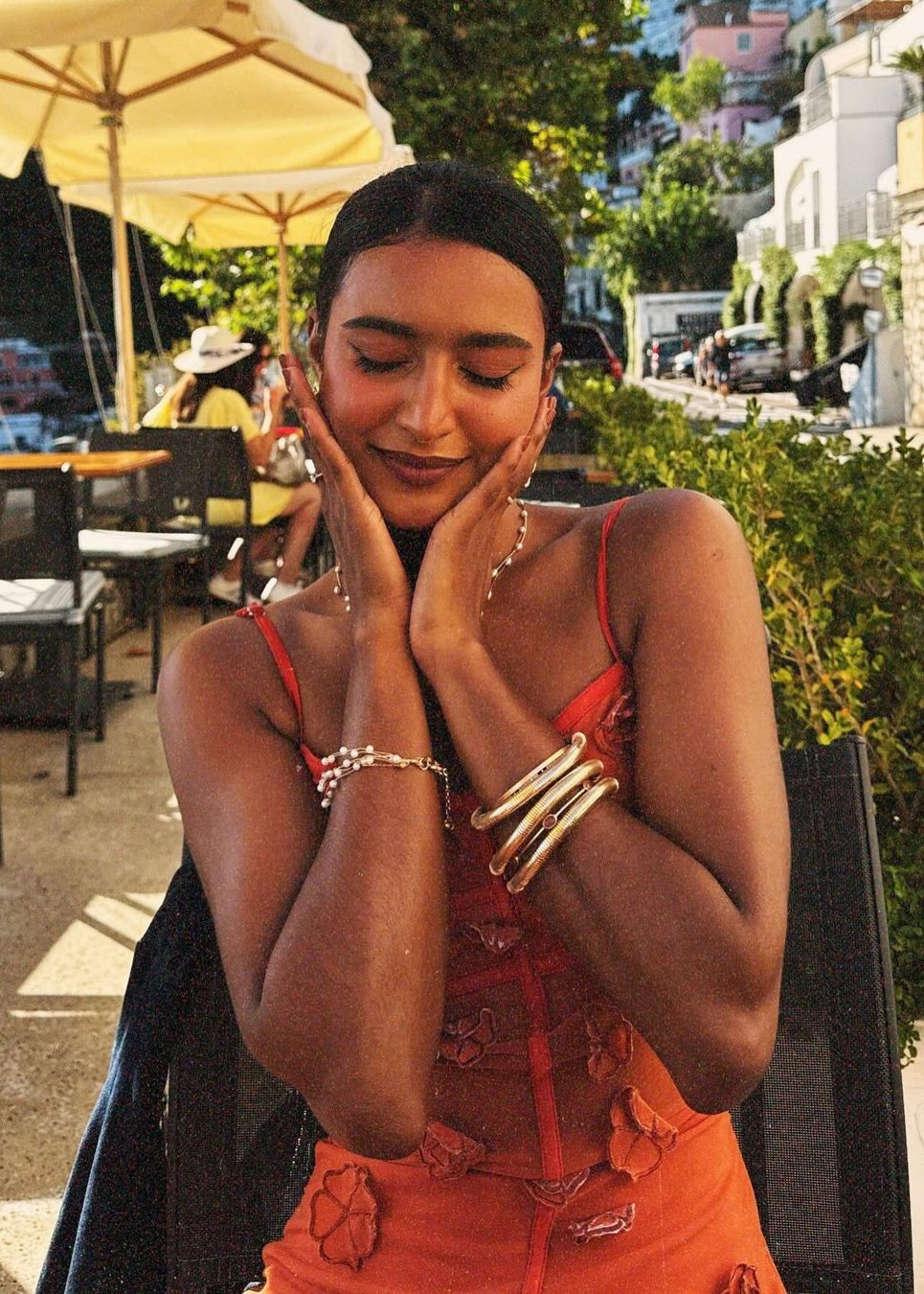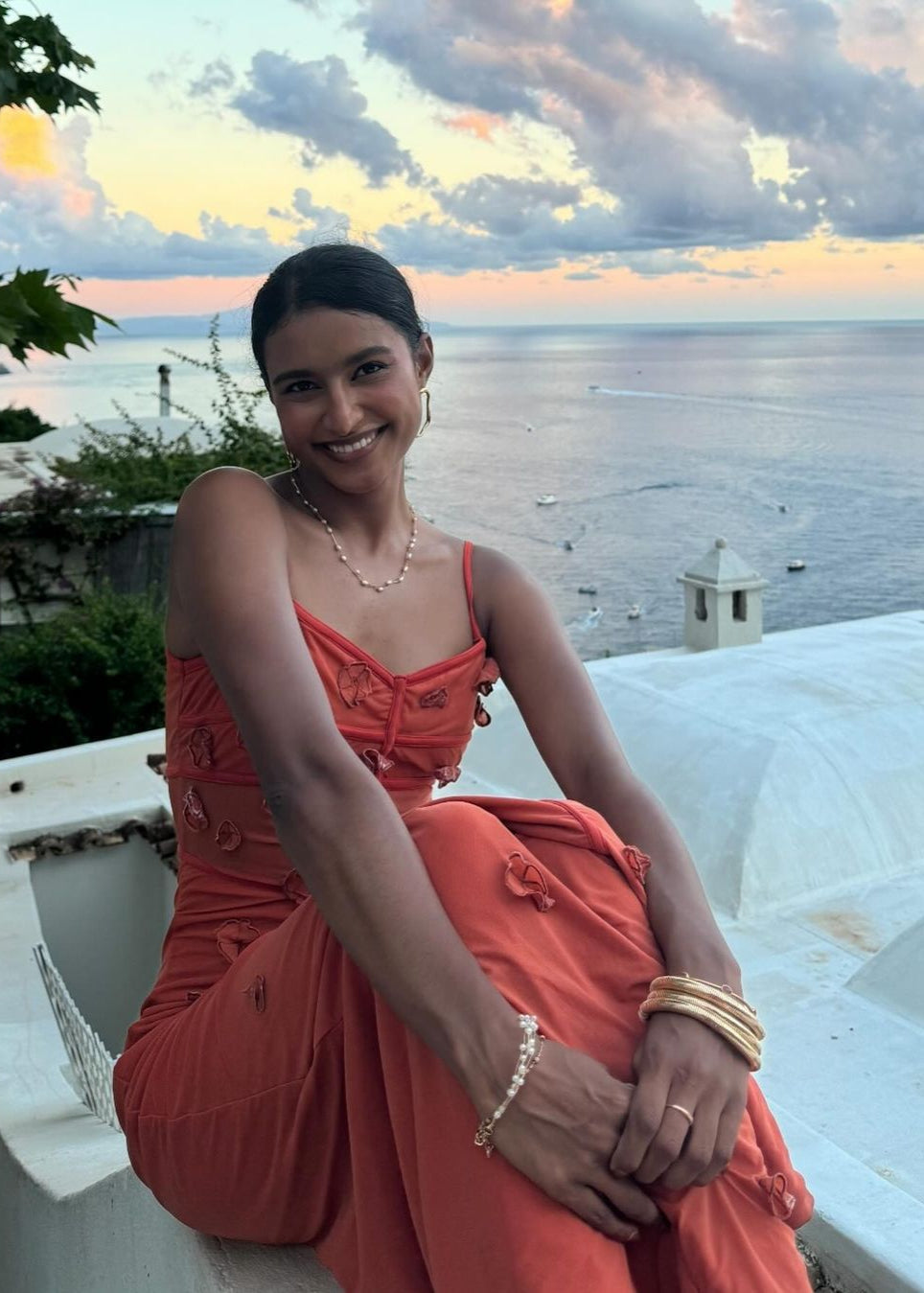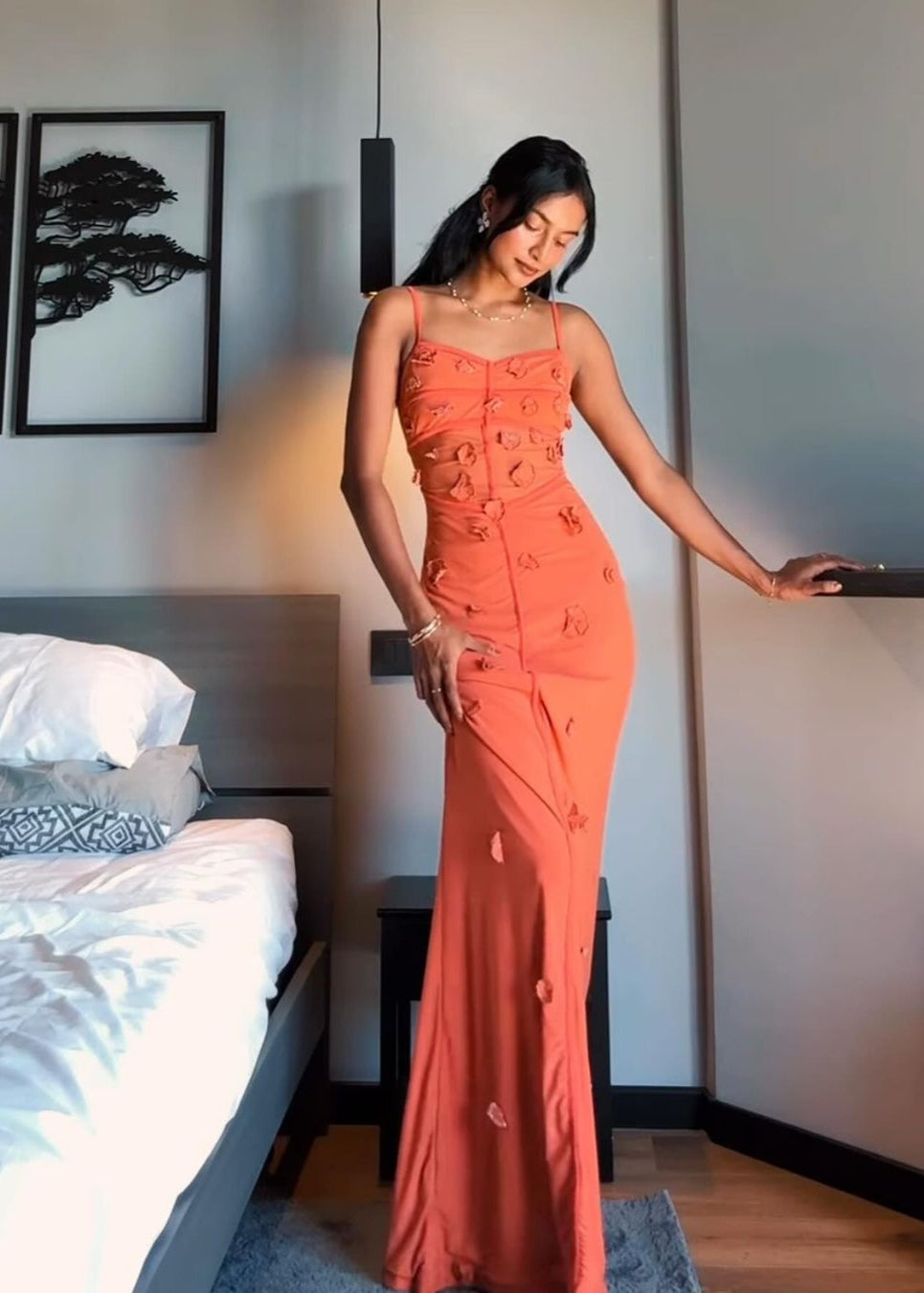 Olivia Baby Pink French Crepe Slit Midi Dress