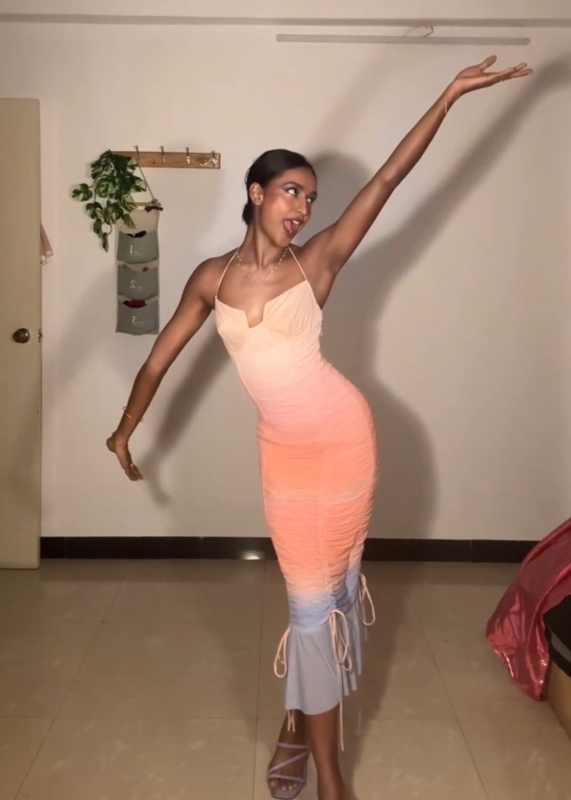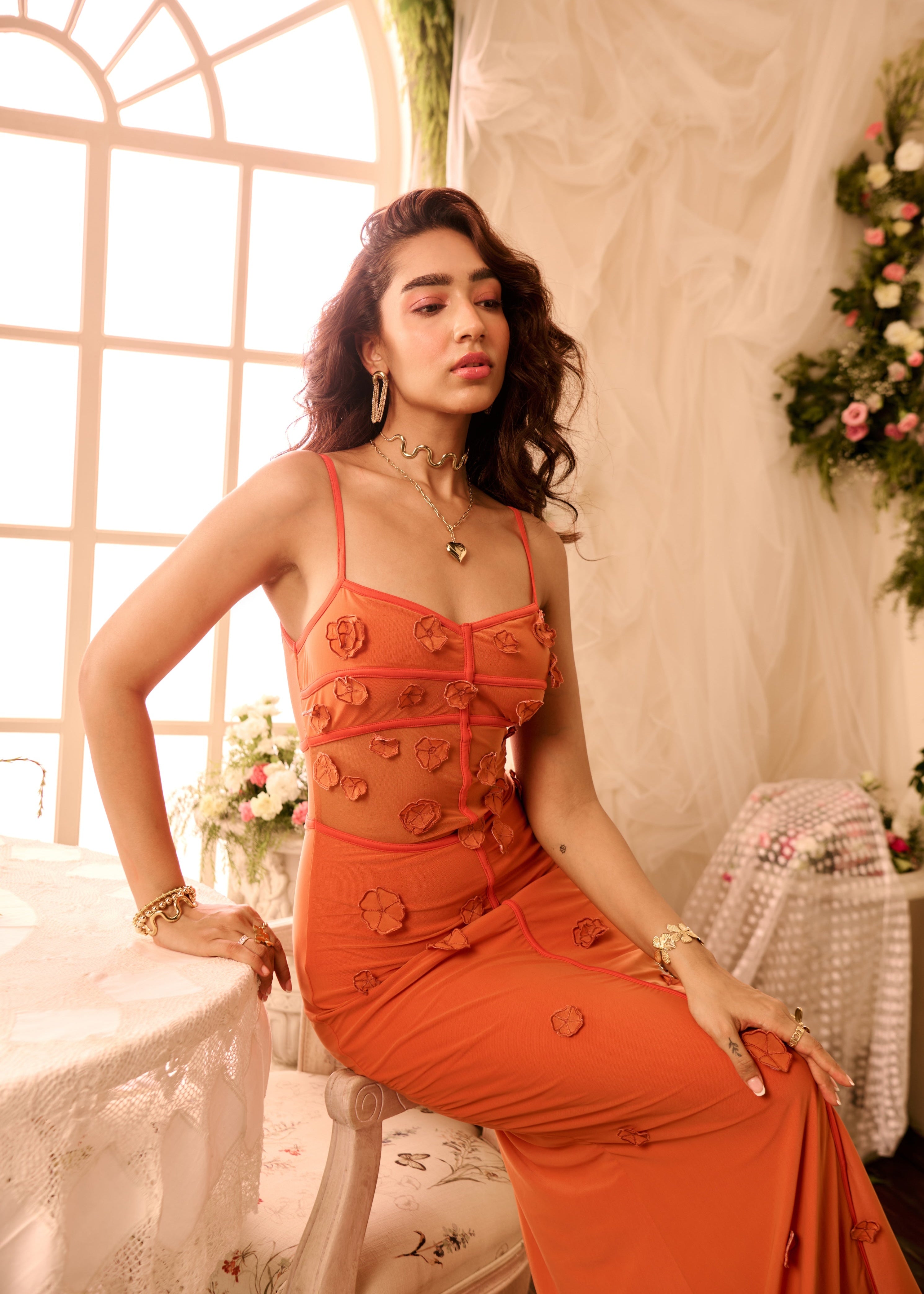 Tatiana Pink Ombre Ruched Mesh Midi Corset Dress