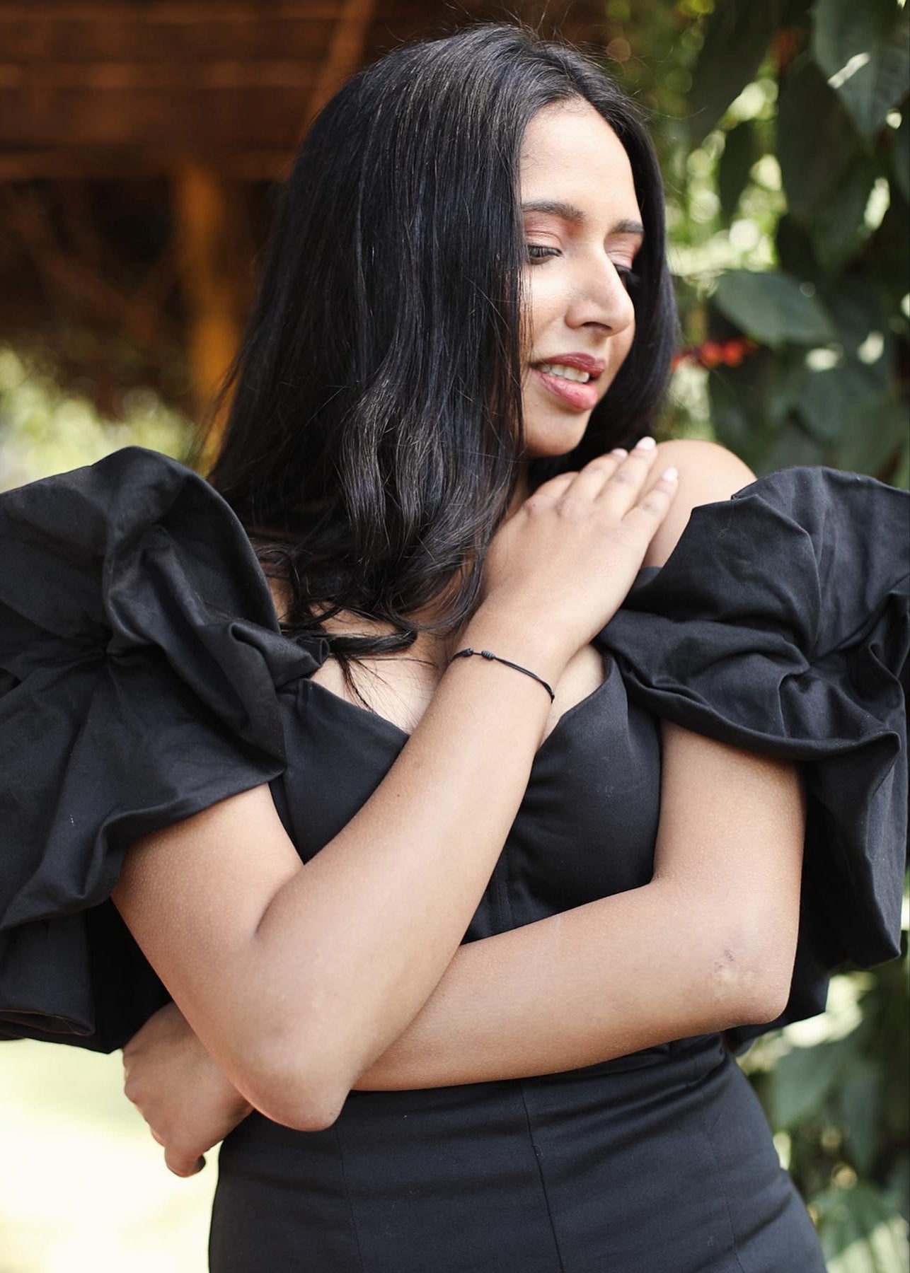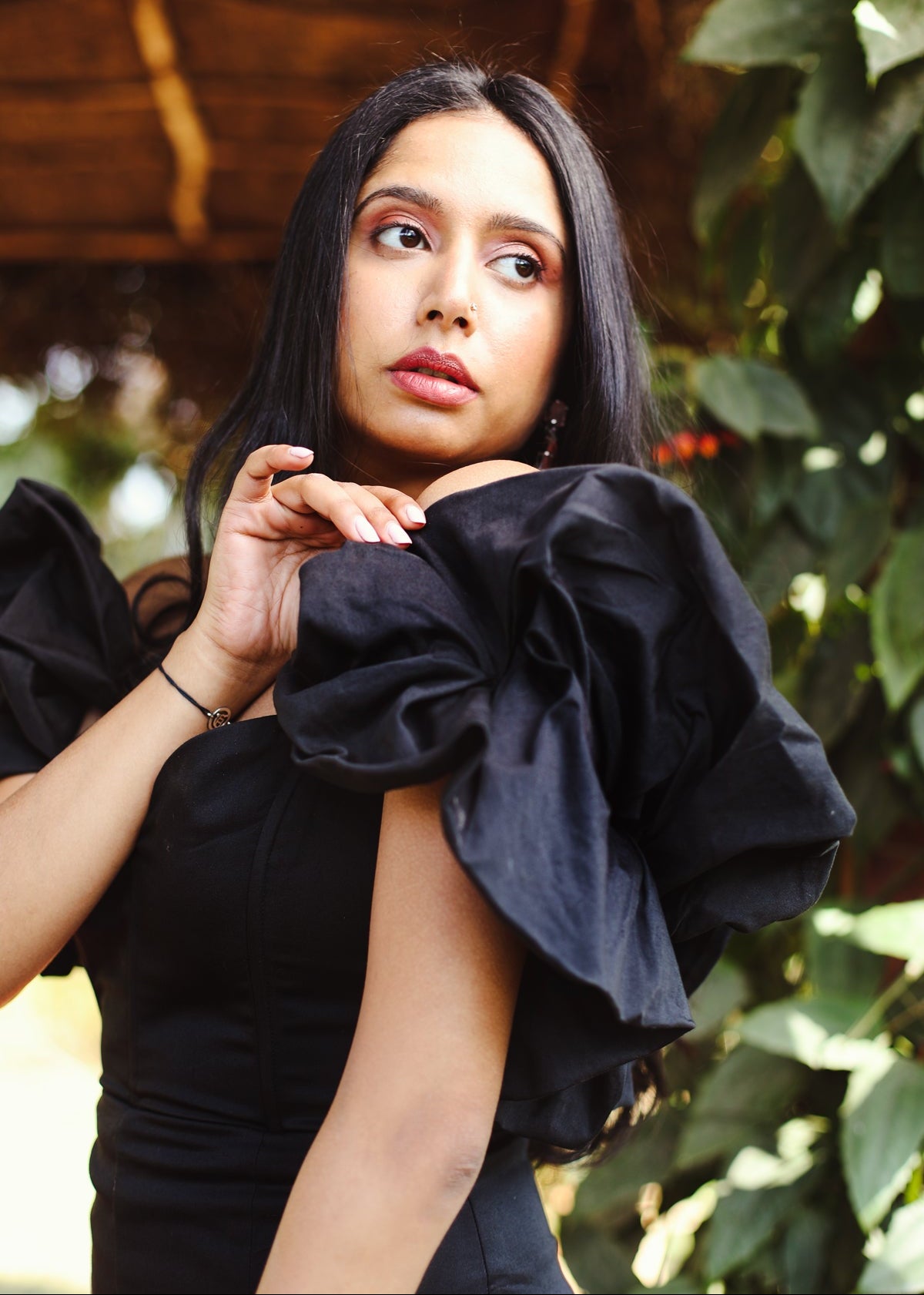 Natalia Black Ruffle Sleeve Corset Mini Dress