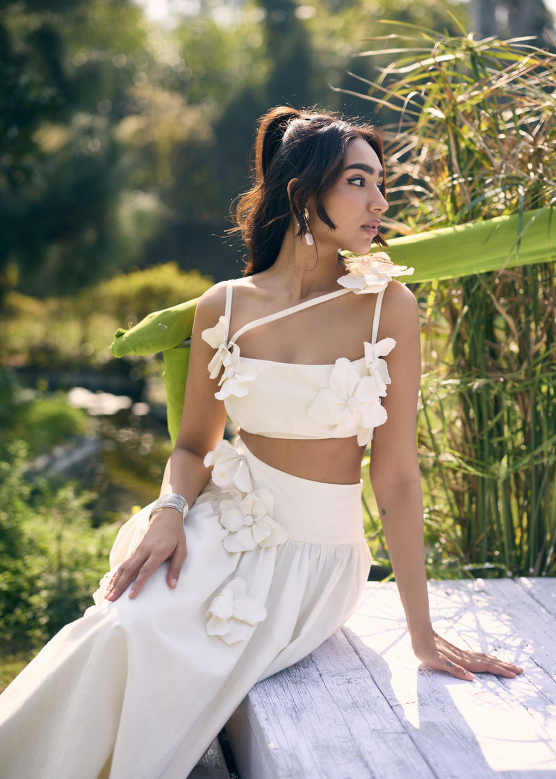 Step into the world of whimsical elegance with the Sharla White 3D Flowers Maxi Skirt – where timeless charm meets a dash of modern flair. Made from premium white cotton cambridge fabrics and lined with soft cotton voile, it's the kind of luxurious comfort that keeps you floating through your day (and night) with effortless grace.