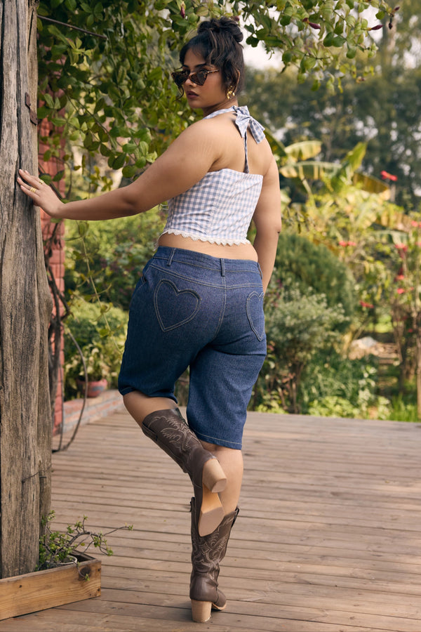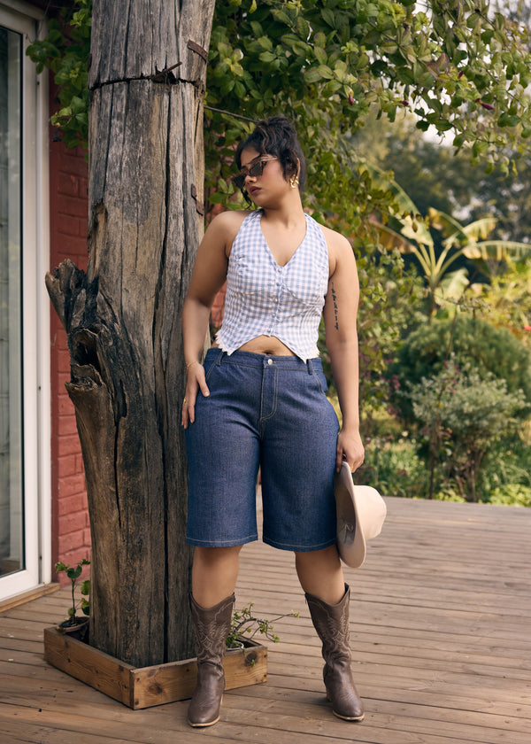 Delia Blue and White Gingham Corset Waistcoat