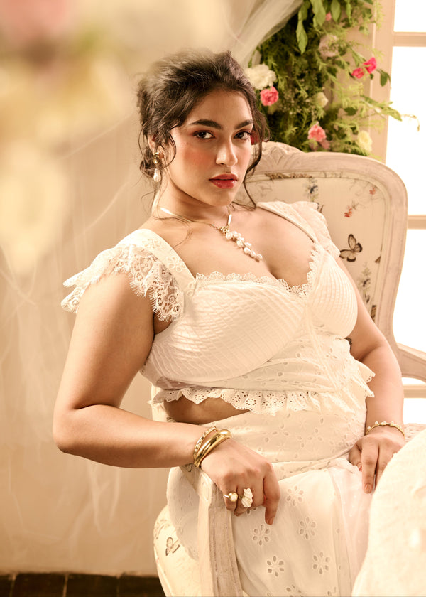 Rabia Ivory 3D Floral Embroidered Cutout Gown