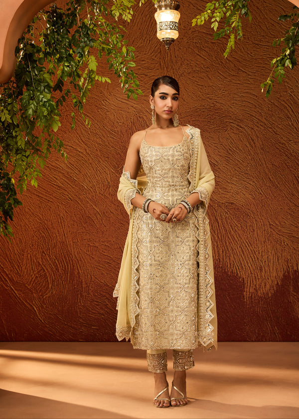 Ryka Sage Green Mirror Embroidered Kurta Set