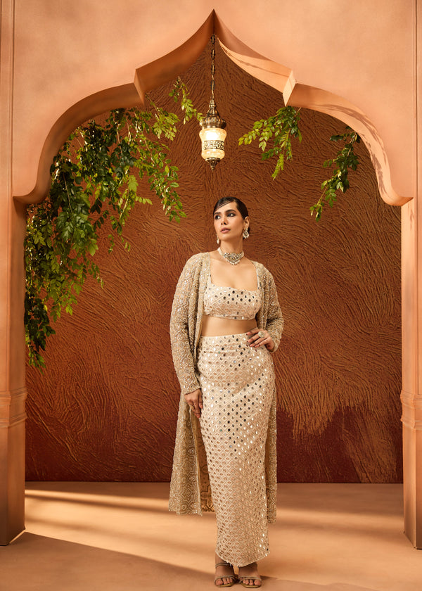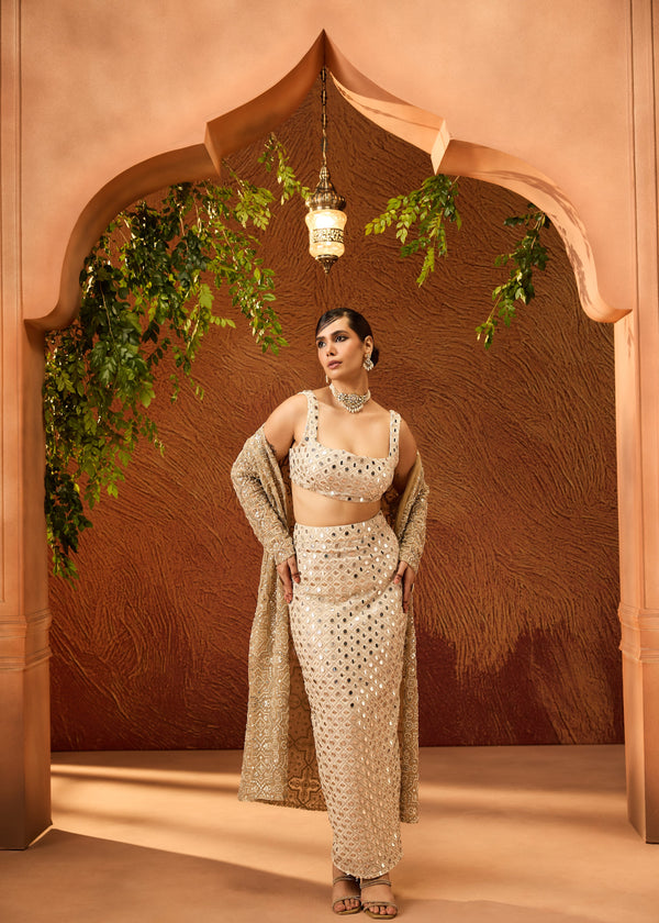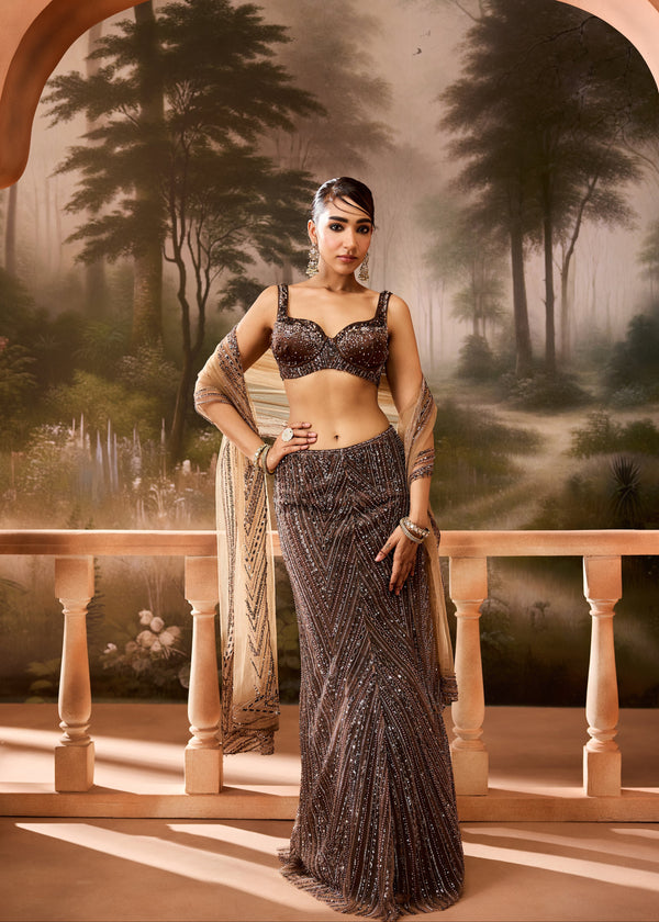 Dyuti Gold Shimmer Pre-Draped Saree Gown