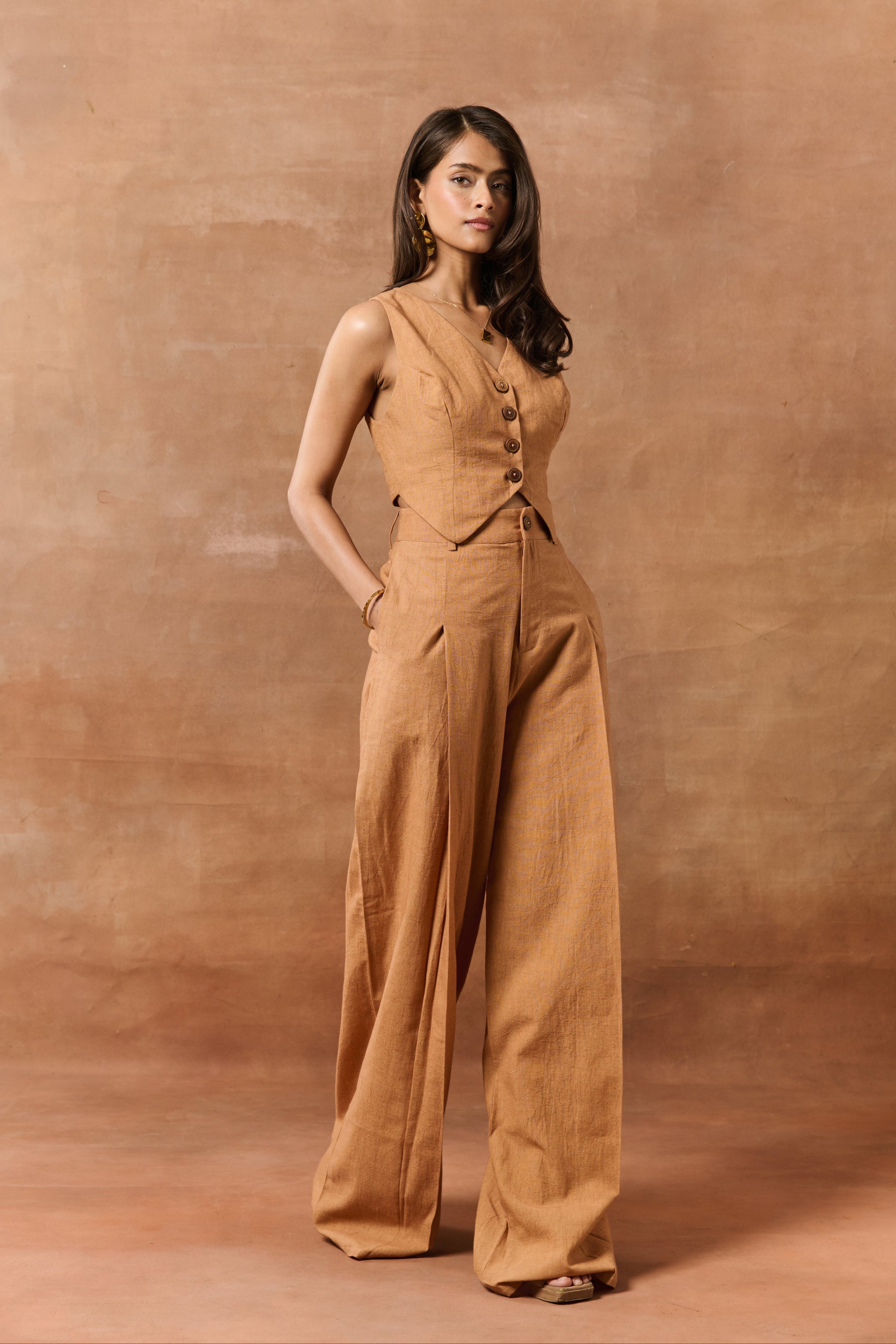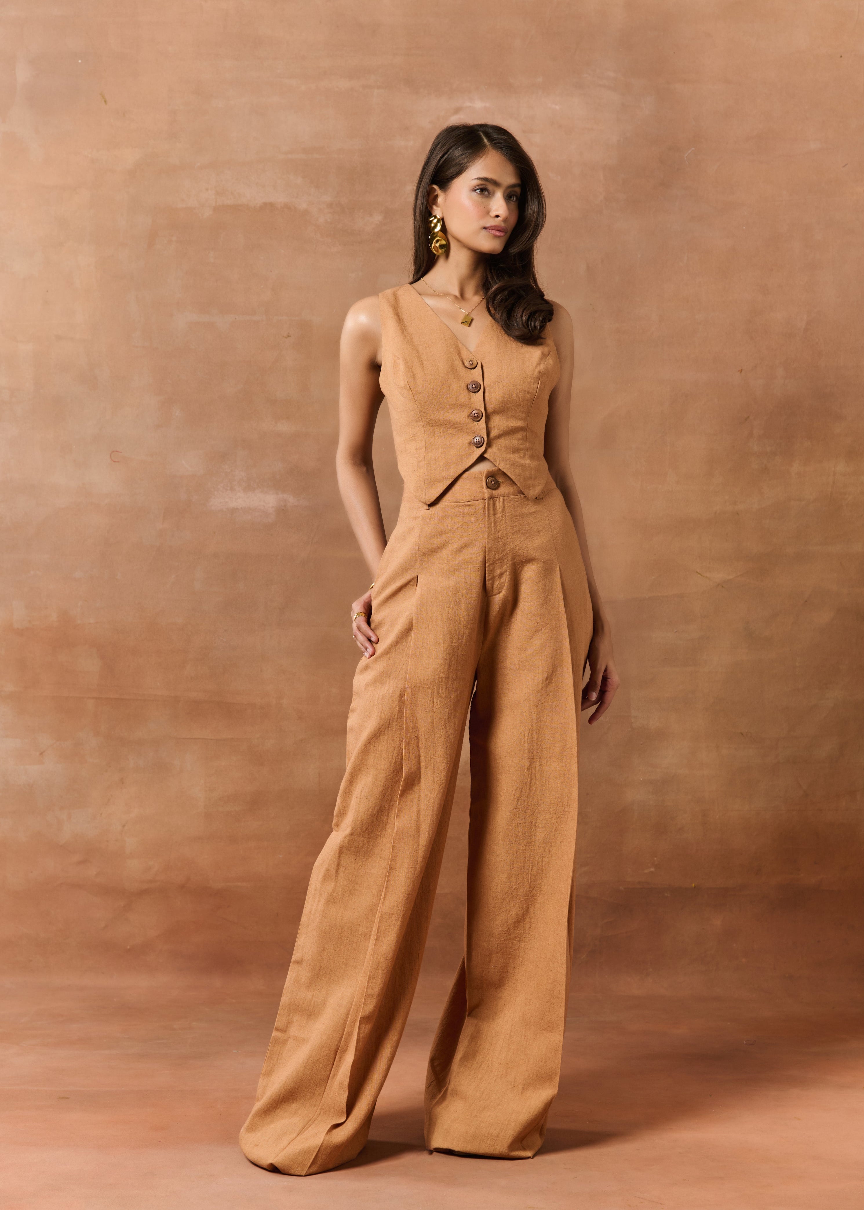Viola Butter Yellow Buttoned Linen Waistcoat