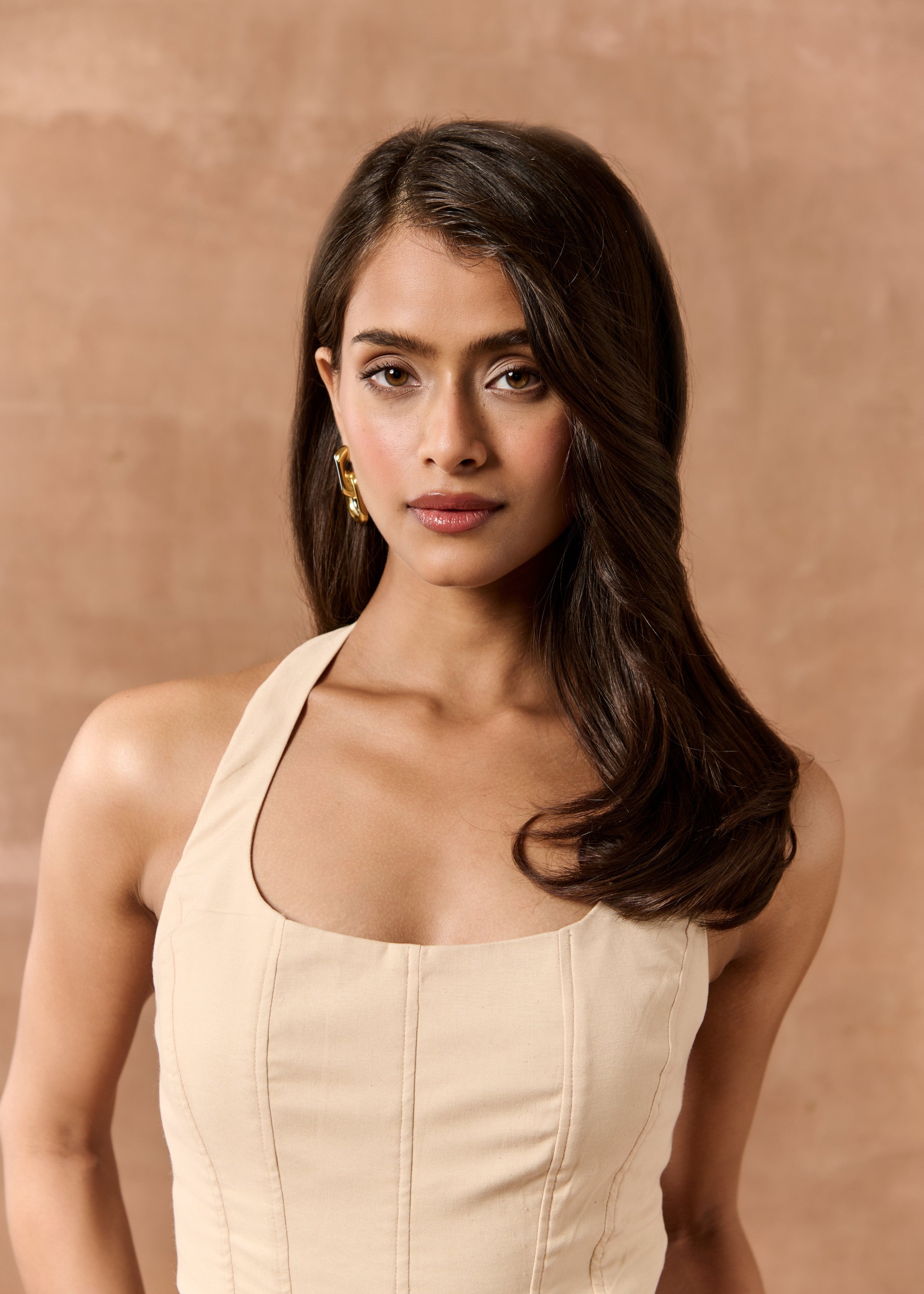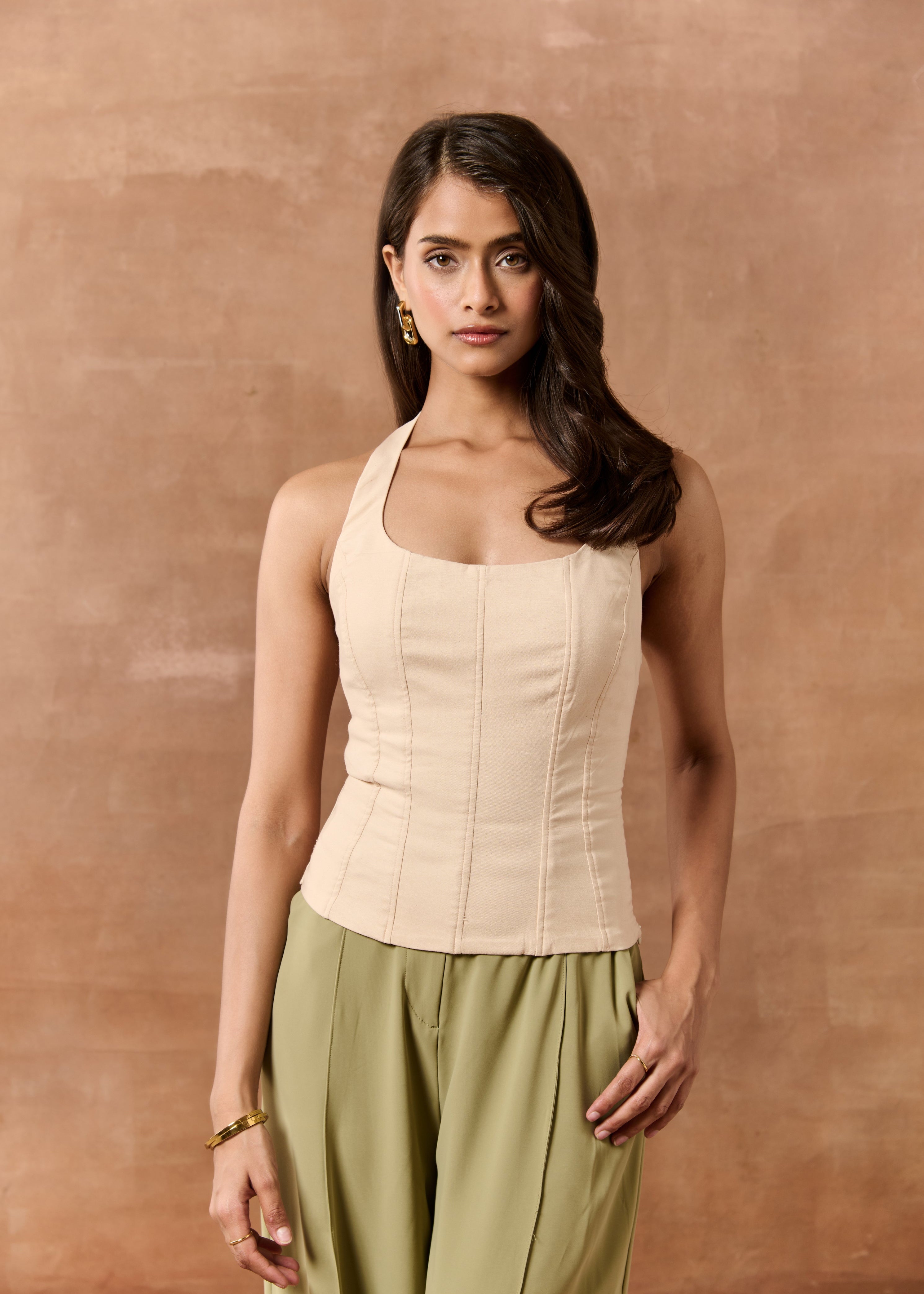 Lois White and Tan Corset Skirt and Shirt Set CL