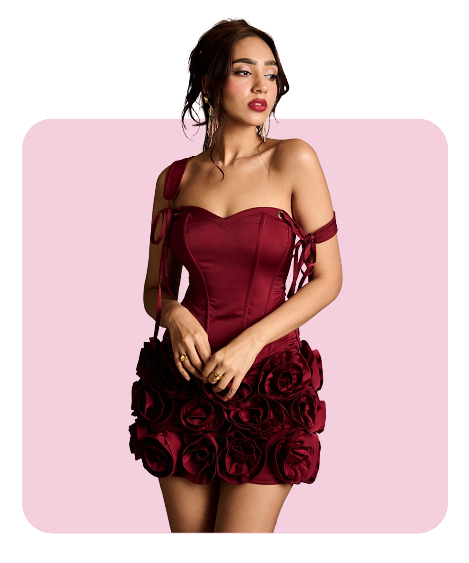 The Arina Sequin Skirt captures the essence of contemporary glamour with its striking texture and radiant finish. Designed in a deep wine tone, it makes a bold yet elegant statement for evening wear.