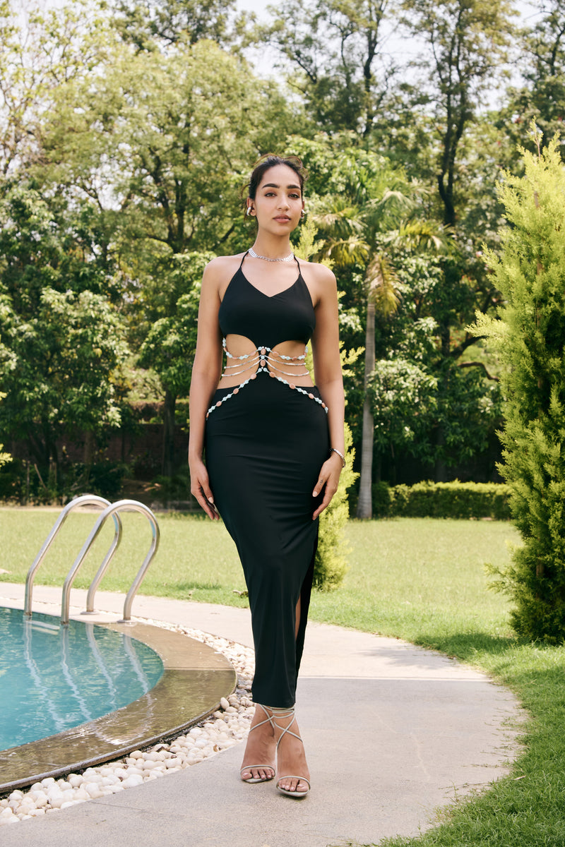 Yuliana Black Cutout Beaded Dress