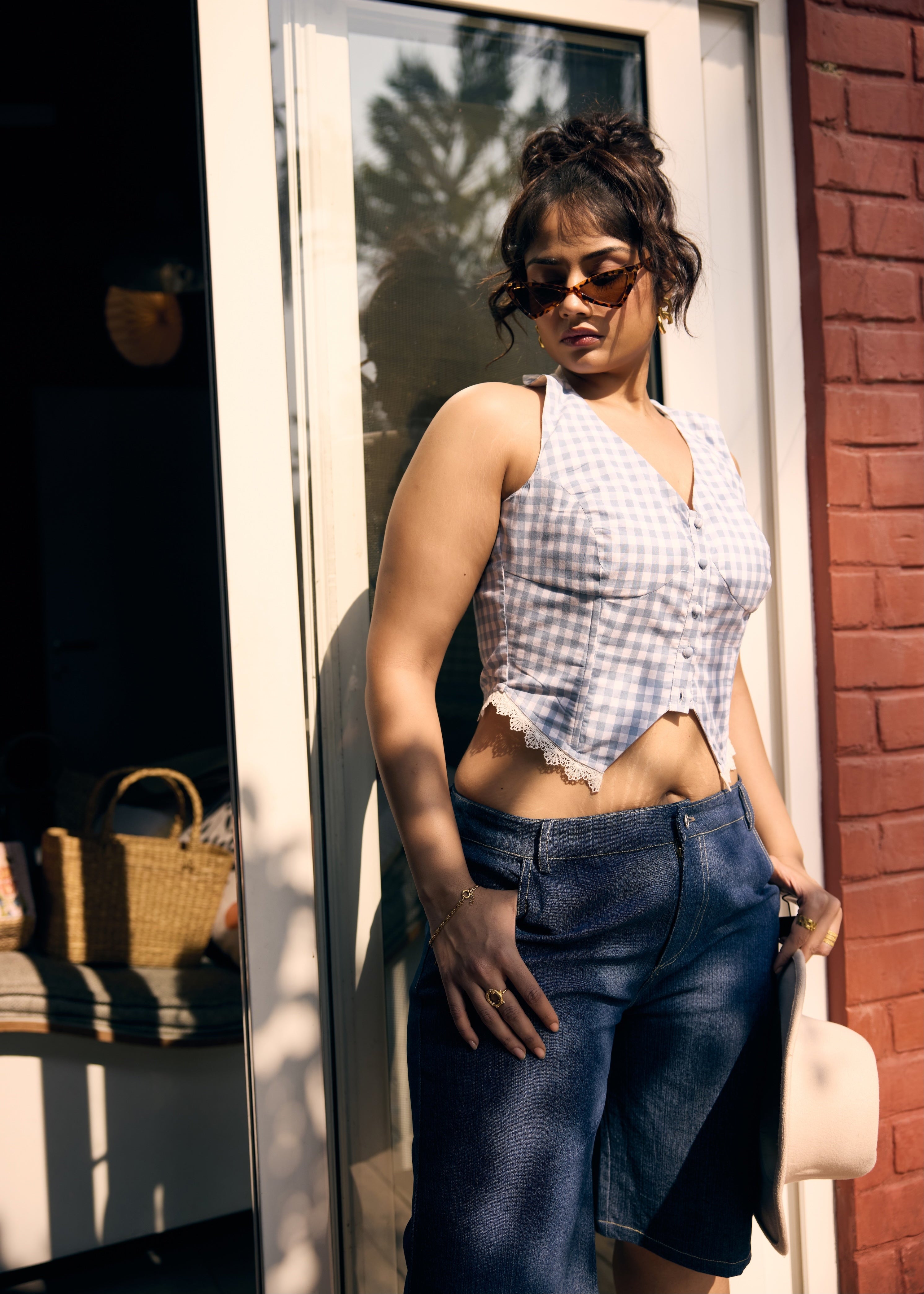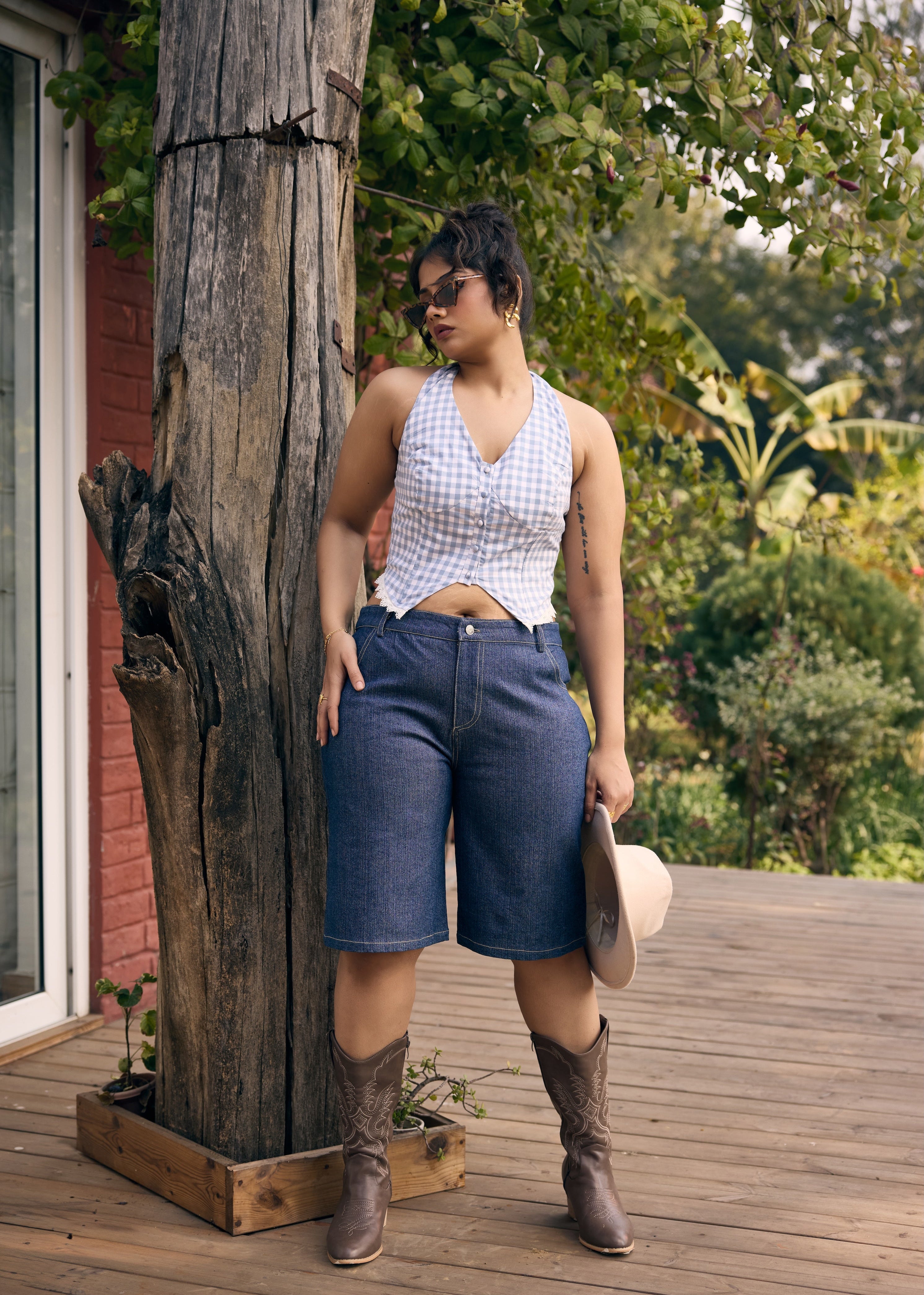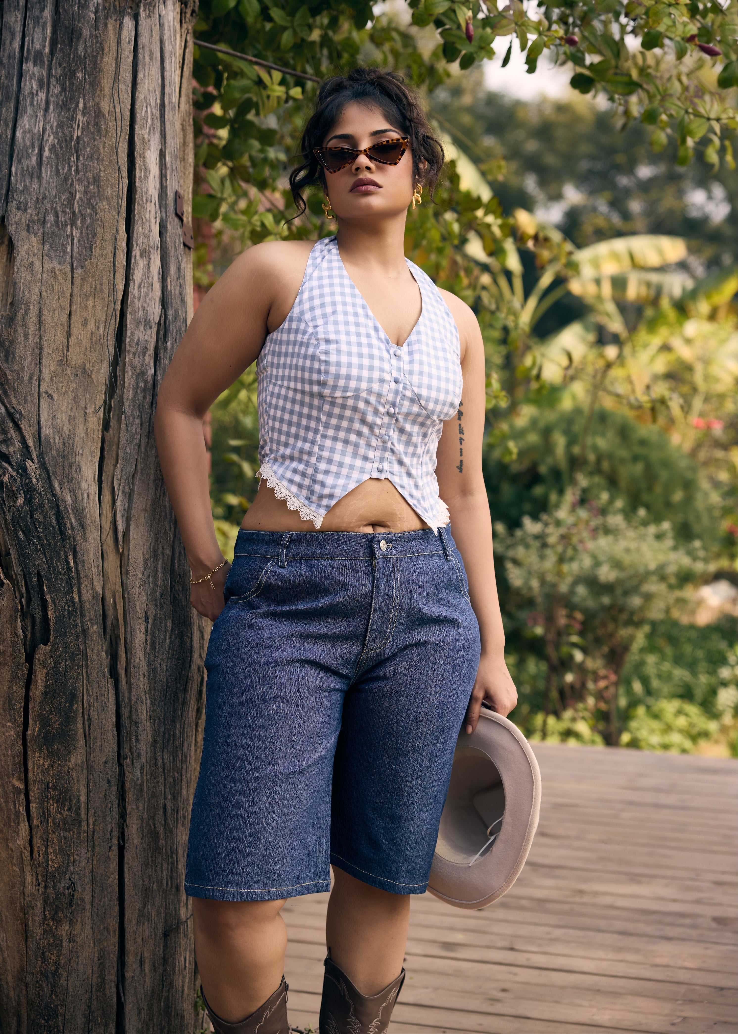 Meet your new denim obsession: the Delia Blue Denim Bermuda Shorts—a perfect blend of effortless cool and just the right amount of sass. Crafted from the softest, high-quality blue denim, these shorts feel like a dream while serving up major Y2K vibes. The low waist keeps it edgy, the knee-length cut adds that chic, laid-back charm, and let’s not forget the little surprise—a heart embroidery on the back pocket because, well, details matter. Finished with a classic button and zip closure, these are the shorts you’ll reach for when you want to keep it casual yet statement-worthy.