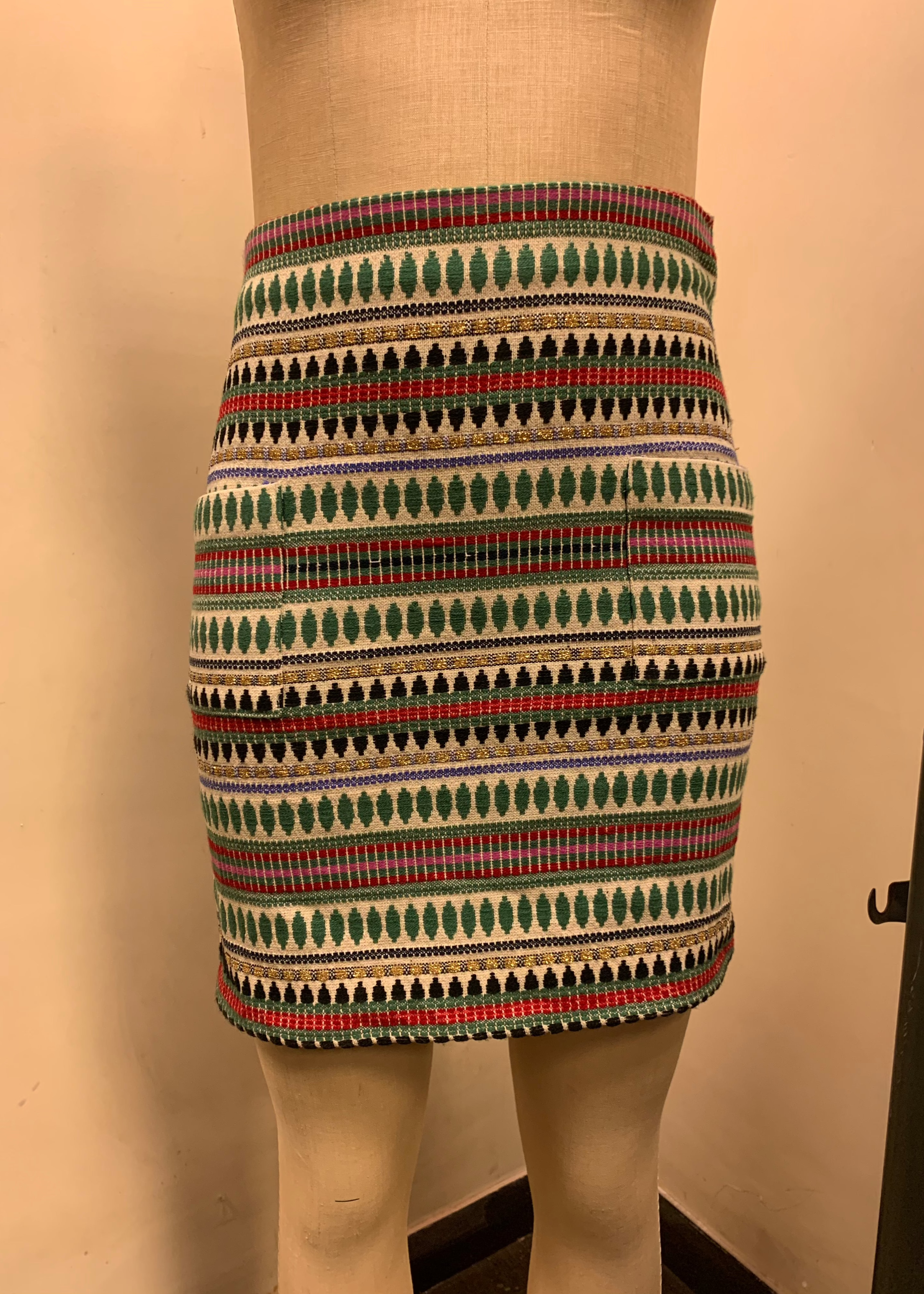 - High-Waisted, A-Line Mini Skirt with Pocket Detailing with Concealed Zip Closure to the Back.