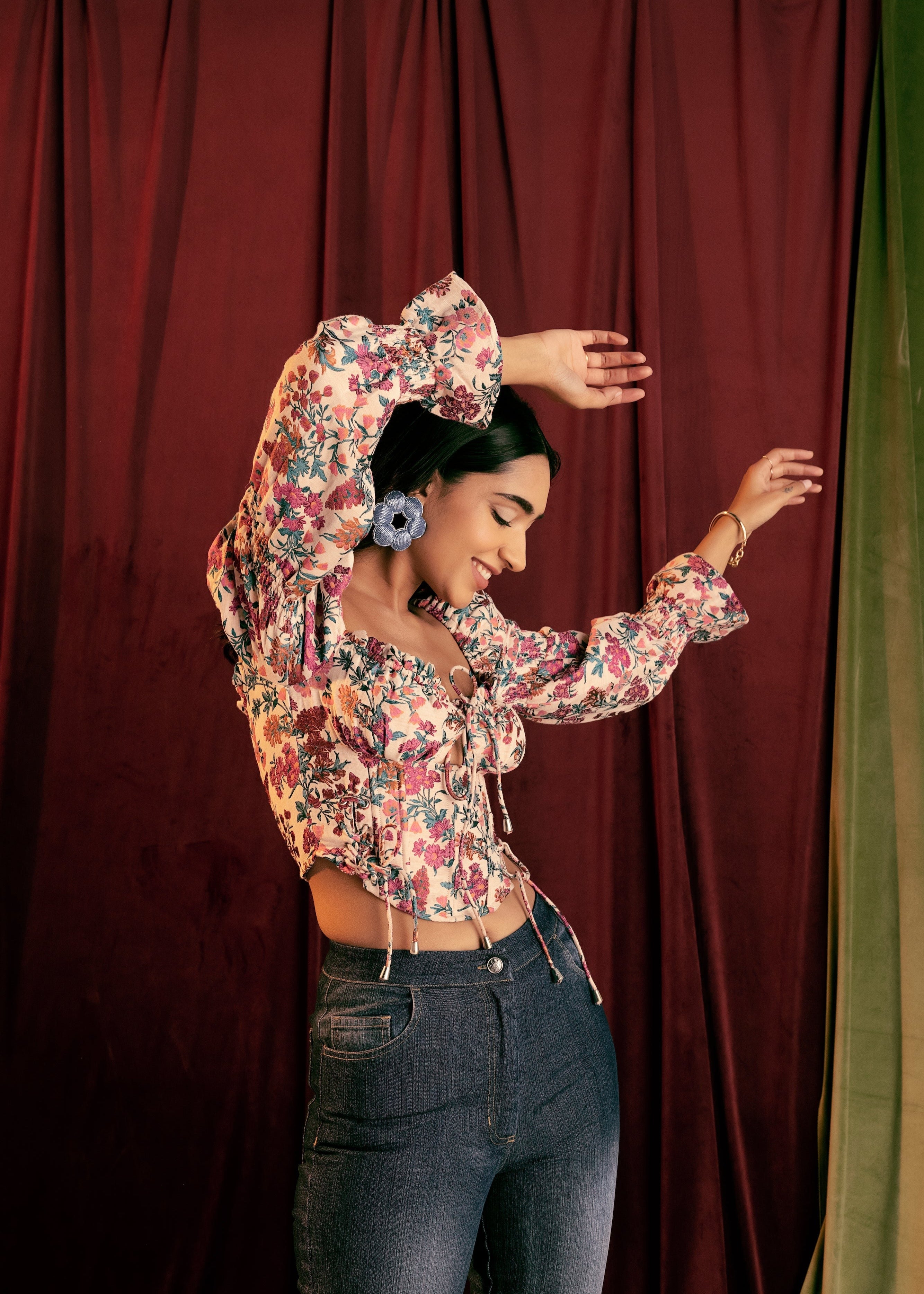 Welcome spring with our Dianna Embroidered Tie-Up Puff Sleeve Corset. Made with a gorgeous, floral embroidered jacquard fabric, our Dianna comes with our signature boned corsetry, an adjustable ruched bust, and statement puff sleeves. Tie-up detailing on either side at the front completes this gorgeous look! Jeans-and-a-nice-top never looked so good!