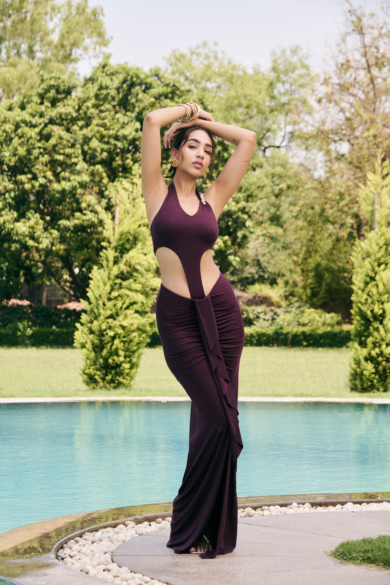 Turn every entrance into a moment with the Elina Plum Modal Draped Skirt—a fluid, feminine piece that’s all about movement and modern allure. Designed in a rich plum hue, Elina features artful ruching at both the front and back, sculpting your silhouette with a flattering, body-skimming fit. The standout detail? A pleated front panel, cut in cascading layers and finished with a daring front slit, bringing just the right amount of drama to every step.