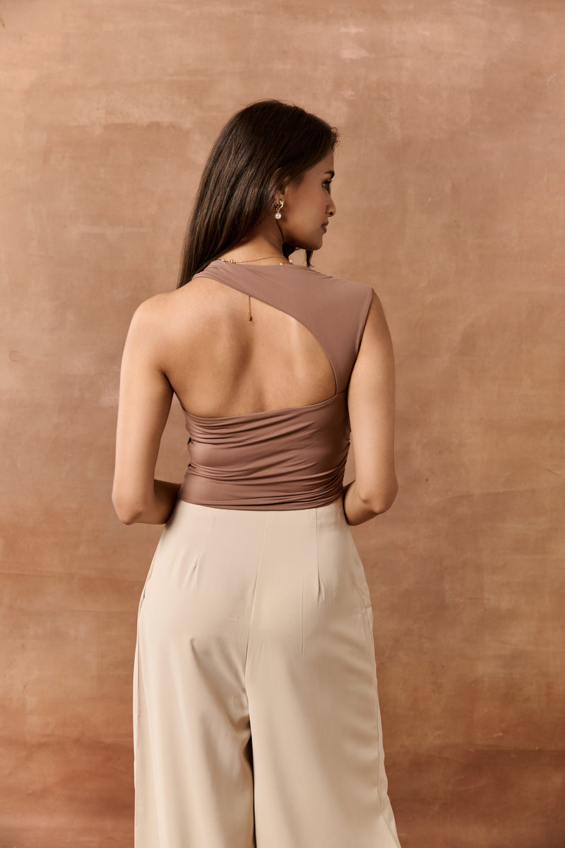 Say hello to your wardrobe’s new wild card—Kaeli is here to spice things up (with zero seams and maximum sass)! Crafted from luxe brown spandex that hugs you like your clingy best friend (but way more flattering), Kaeli features an asymmetric neckline and back detail that screams "I woke up like this" but make it editorial. Add in a seamless silhouette and side ruching that gives you snatched without the squeeze, and you’ve got yourself a top that’s as comfy as it is chic.