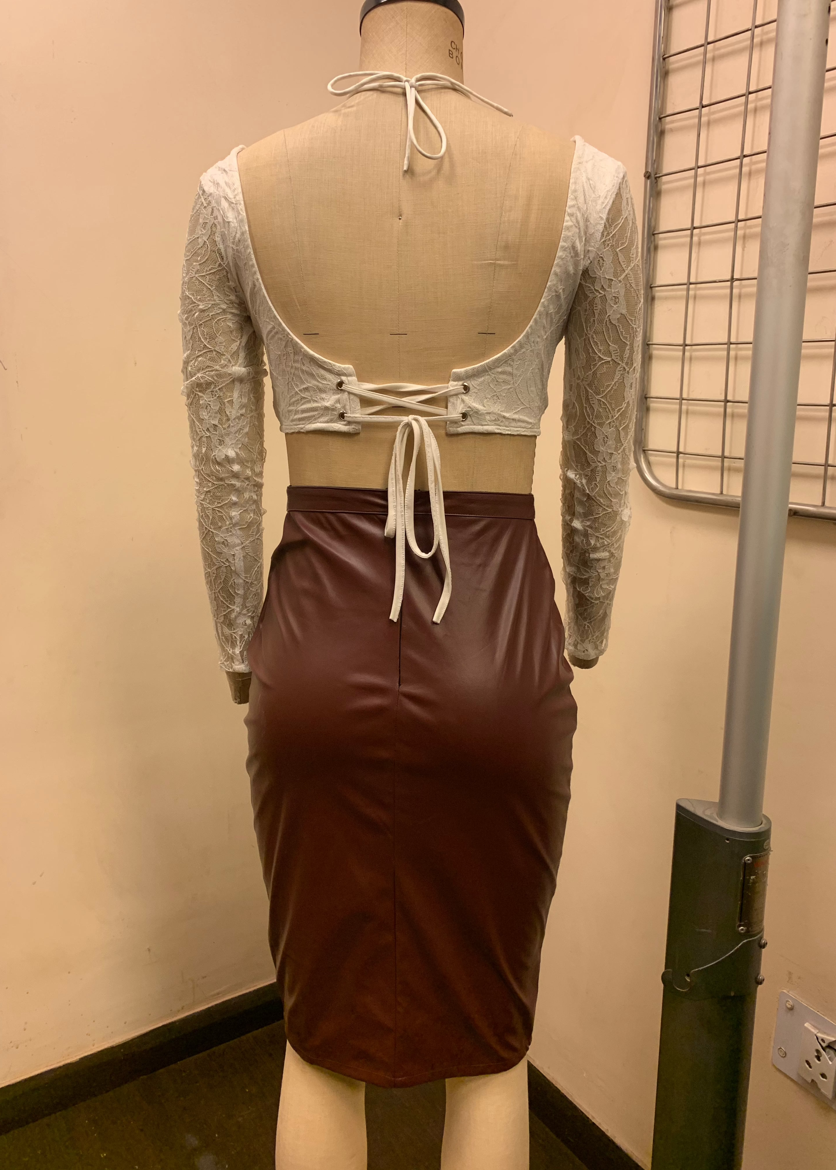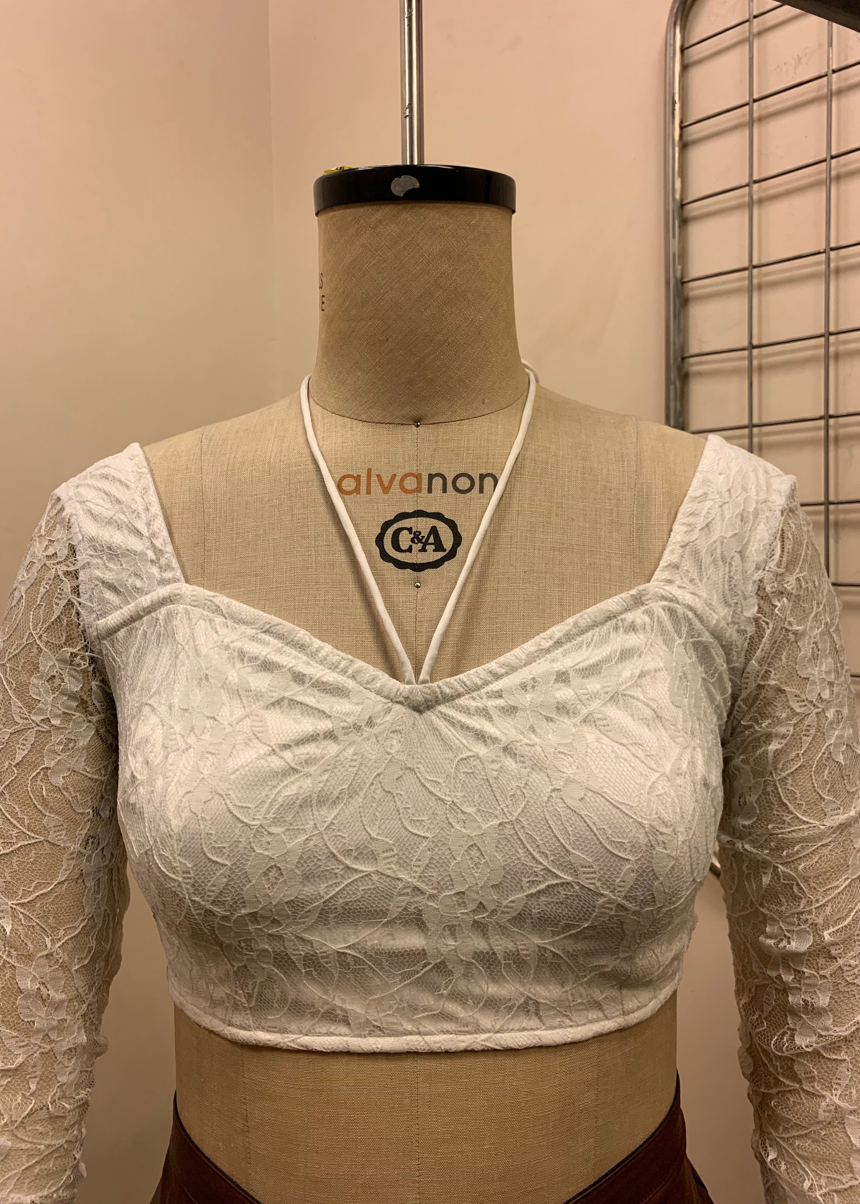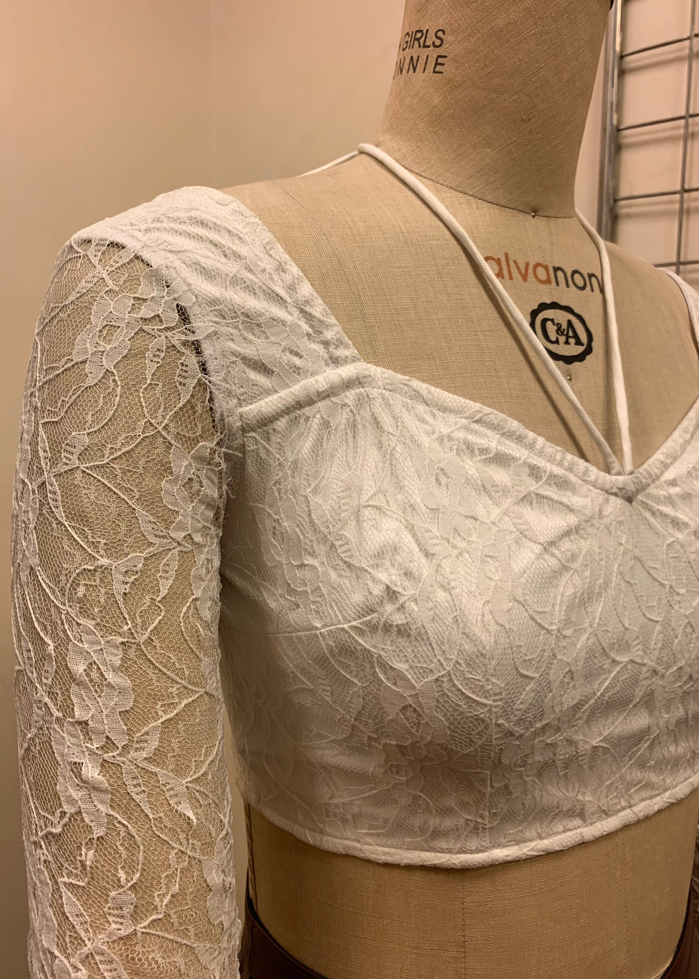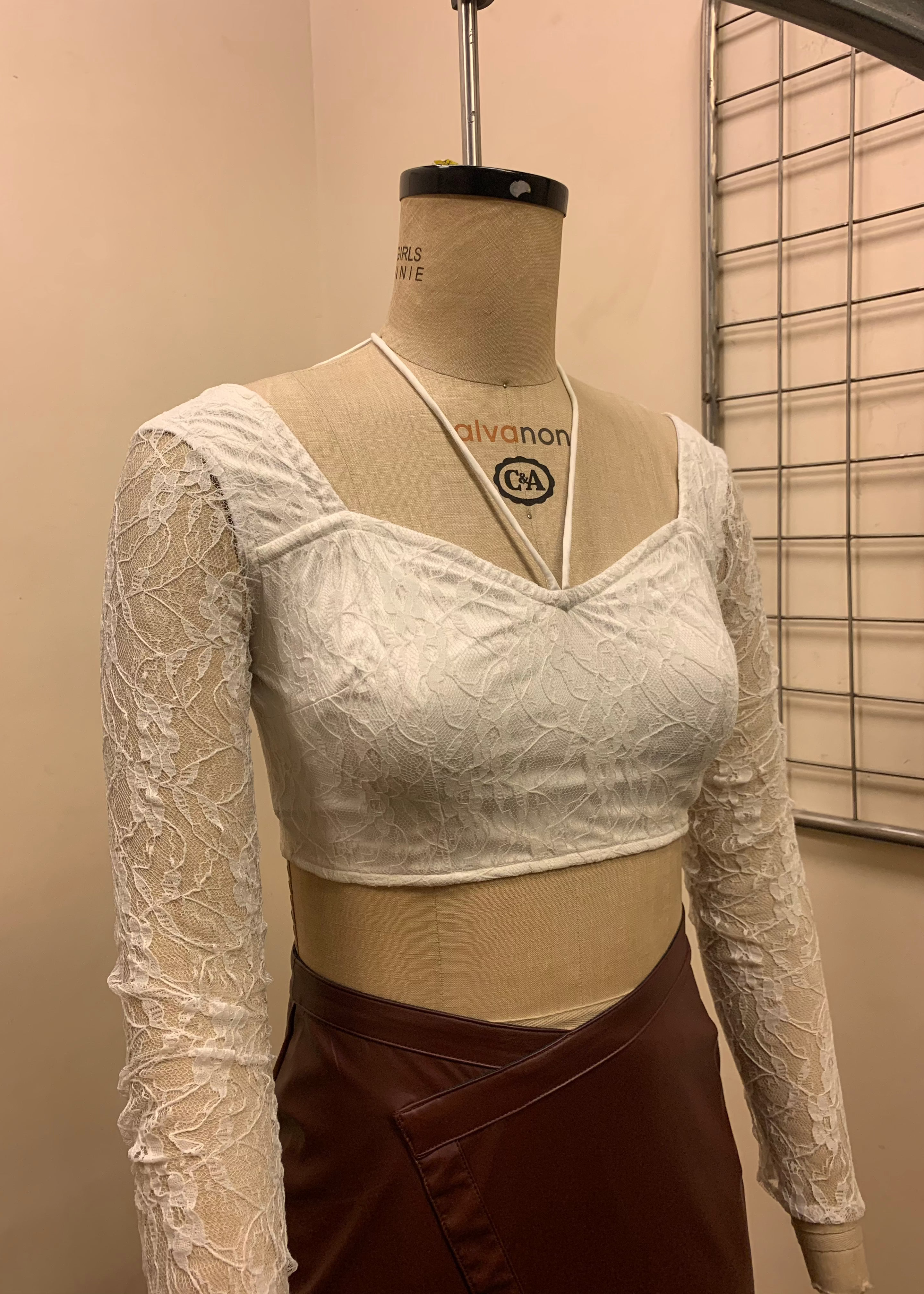 Made with a gorgeous, delicate white lace and Poly knit fabric, our (name) comes in a flattering, cropped silhouette, with long lace sleeves, a square neck, and accent tie straps for a mesmerising look!