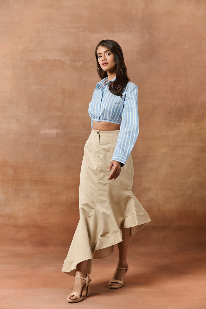Marjolaine Beige High-Waist Asymmetric Formal Skirt