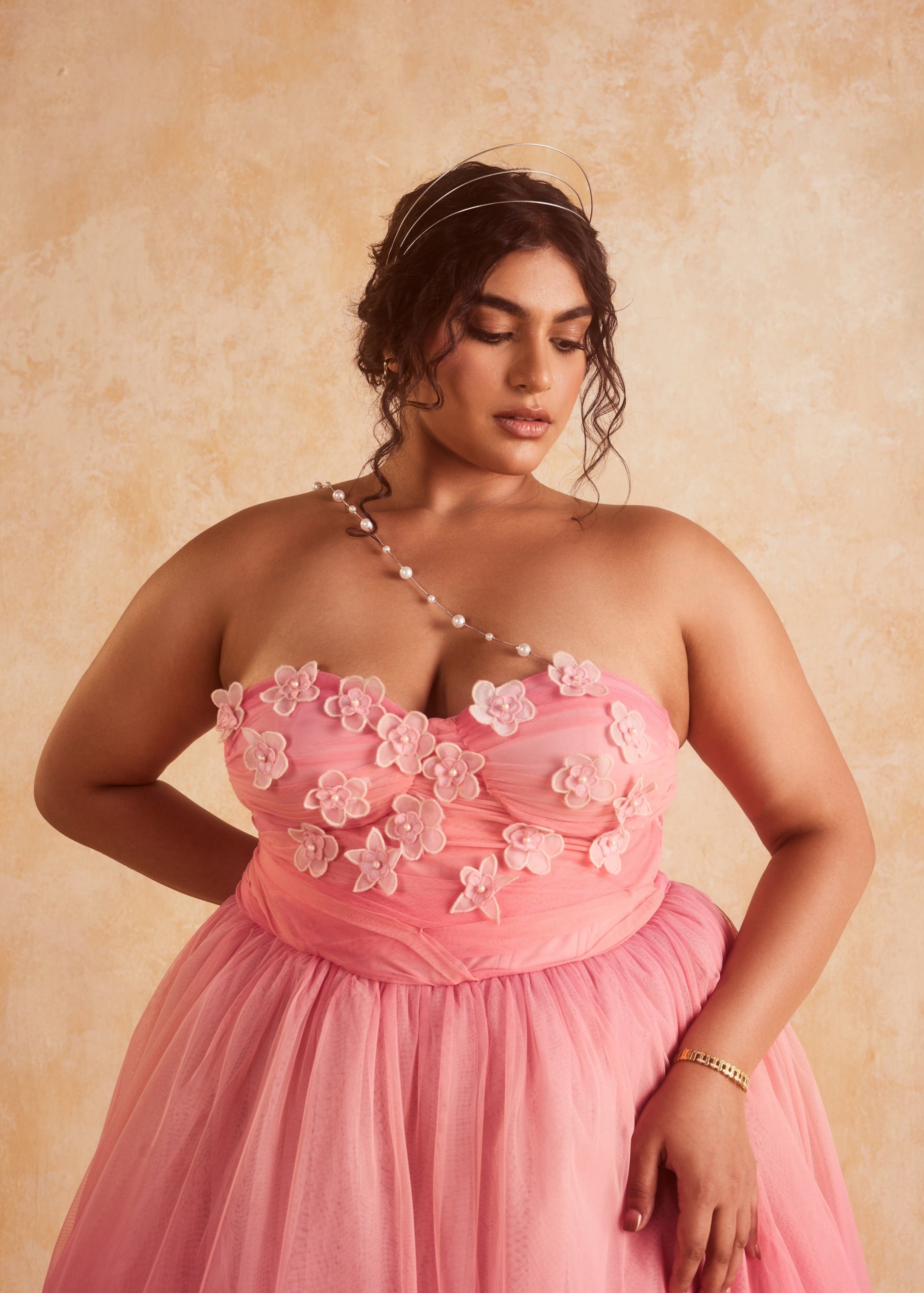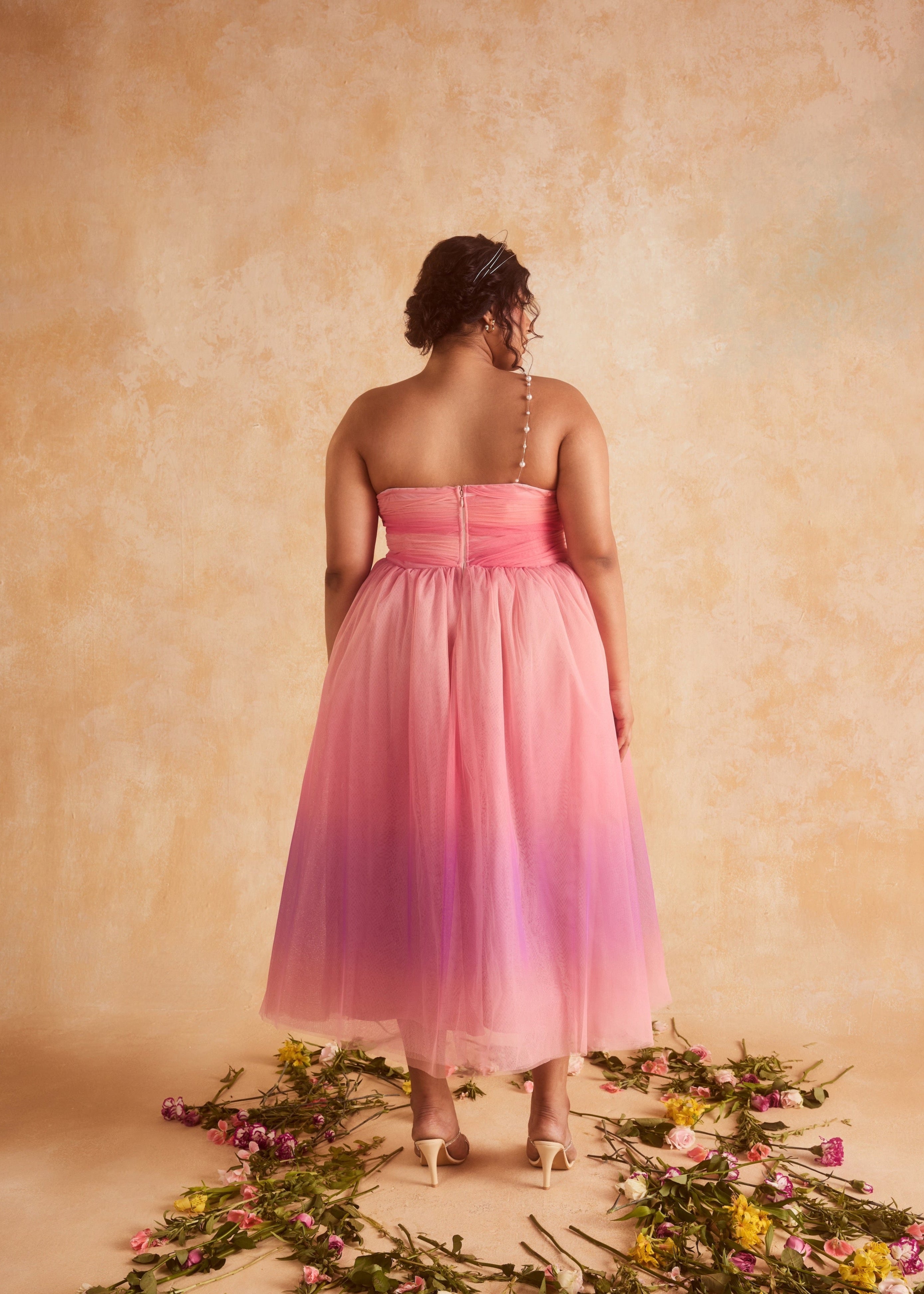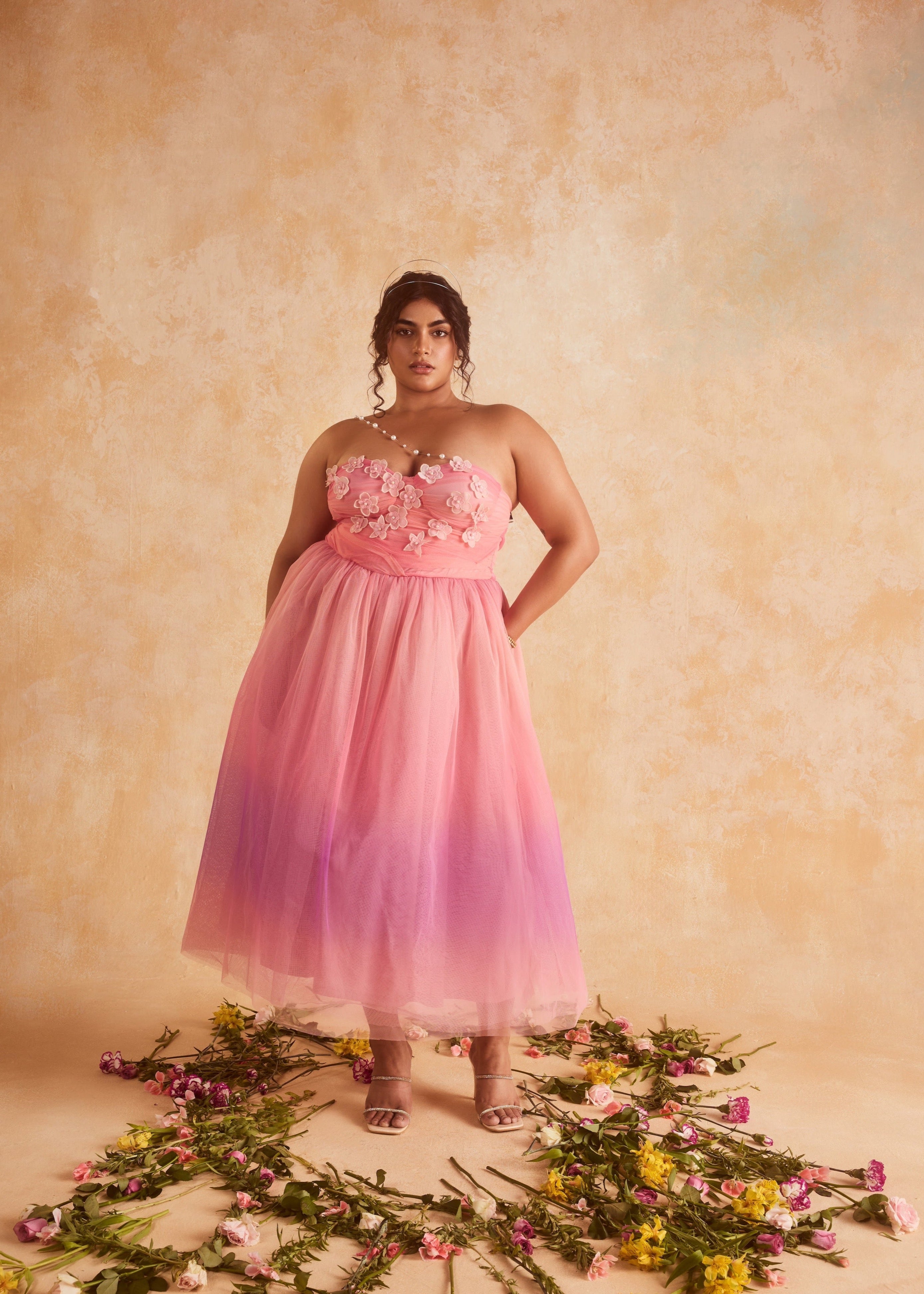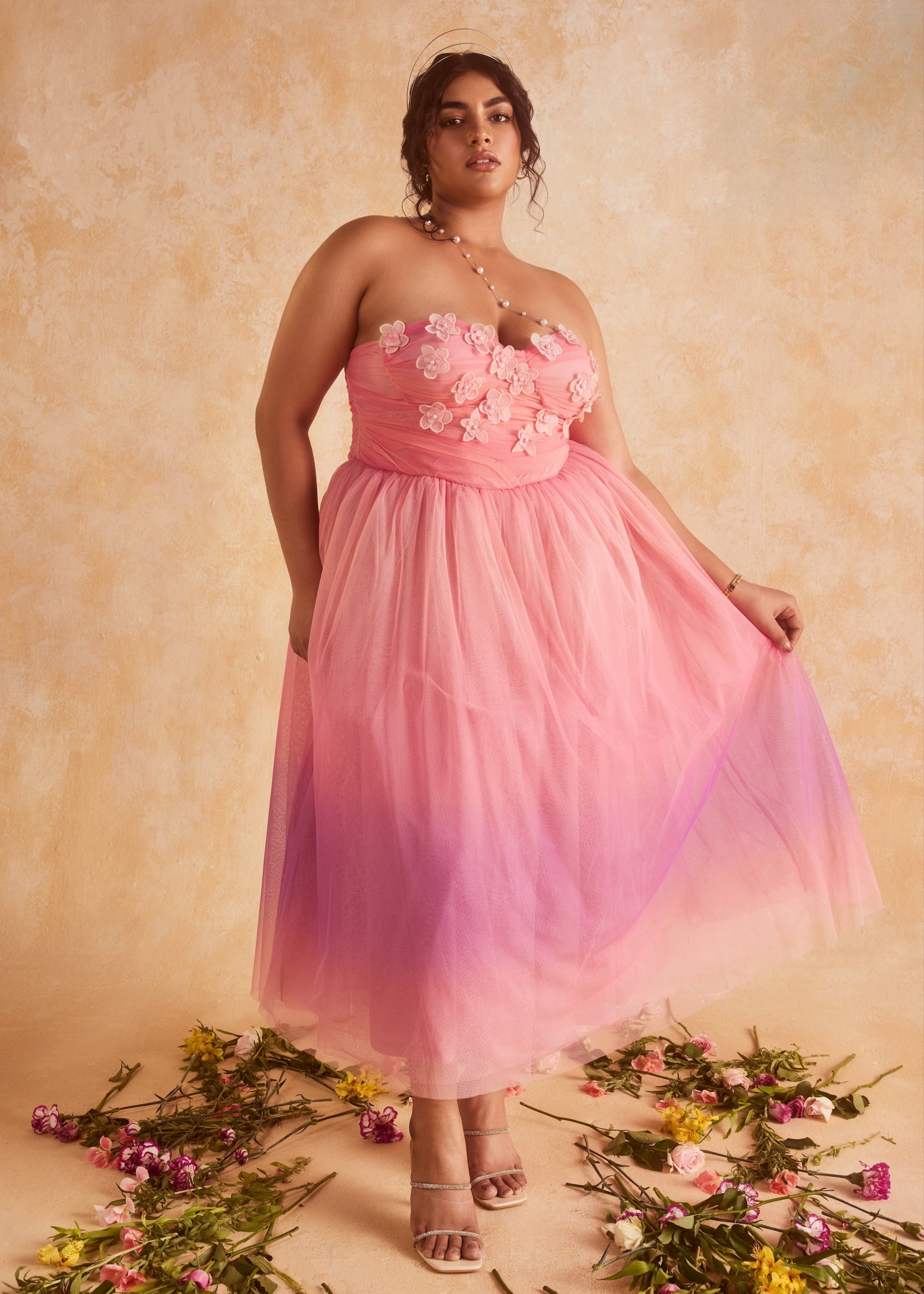 Step into summer like a whimsical dream with our latest enchantment - the Samantha 3D Flower Embroidered Pink Ombre Dress! Crafted from the finest soft pink ombre mesh and adorned with delicate 3D flowers that bloom along the bodice, our Samantha is a masterpiece. Our signature boned corsetry and ruching detailing ensure a flattering fit that accentuates your curves in all the right places. With its bouffant silhouette and concealed zip closure at the back, this dress is as practical as it is enchanting.