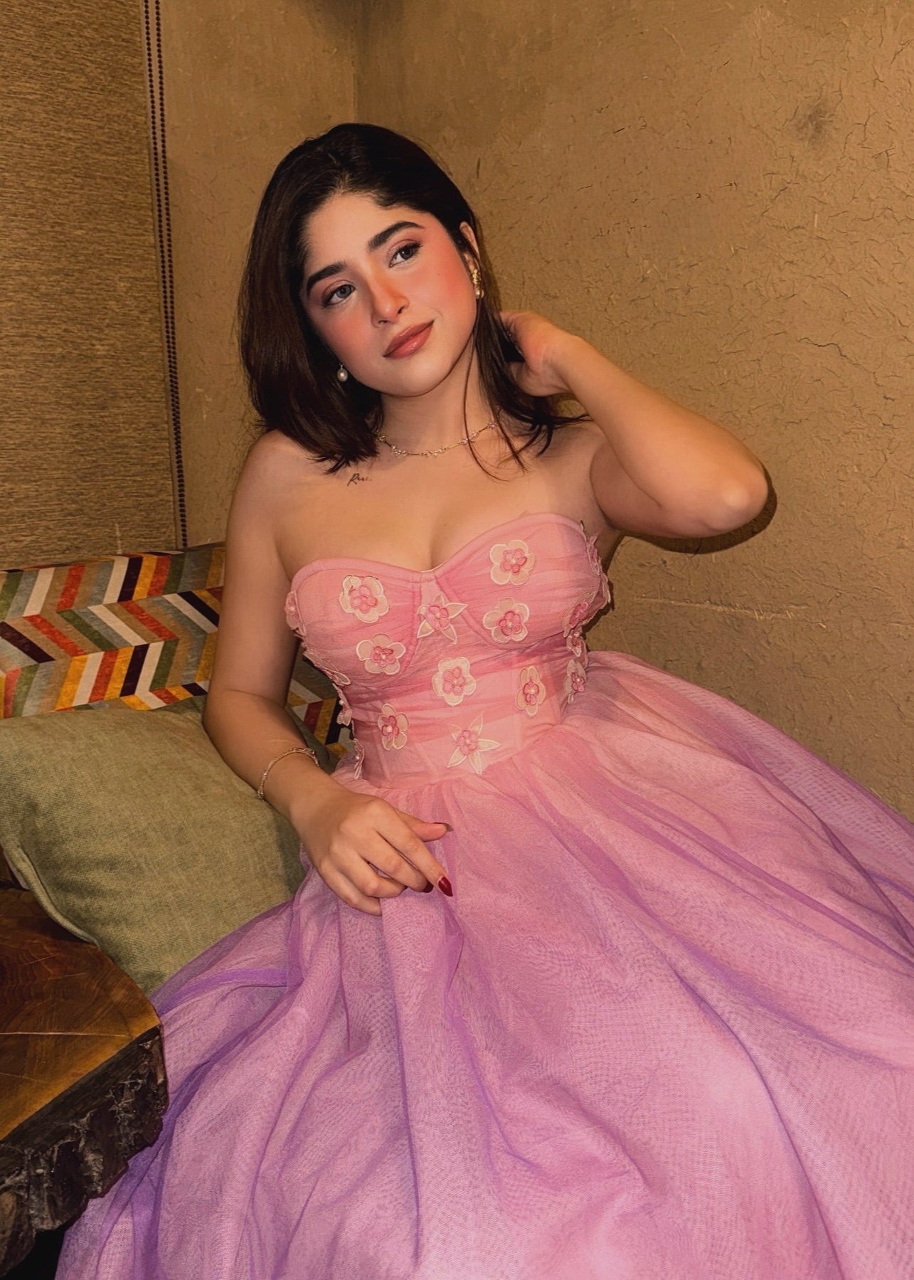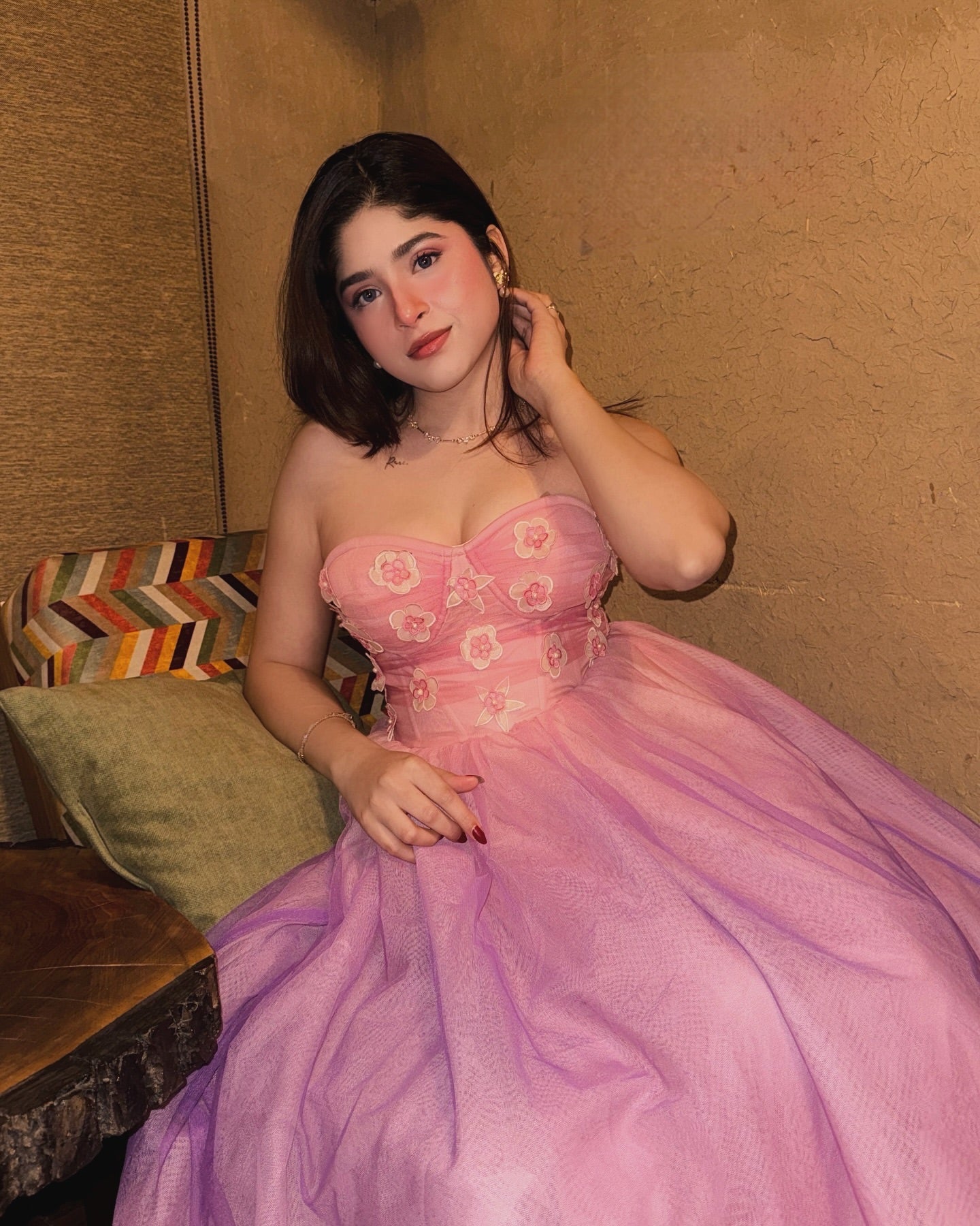 Samantha 3D Flower Embroidered Pink Ombre Dress CL