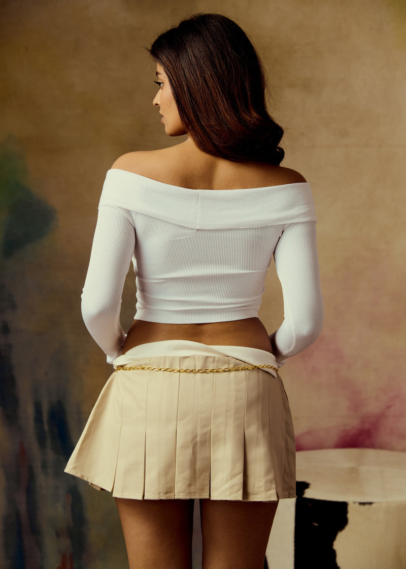 Beryl White Ribbed Off-Shoulder Top